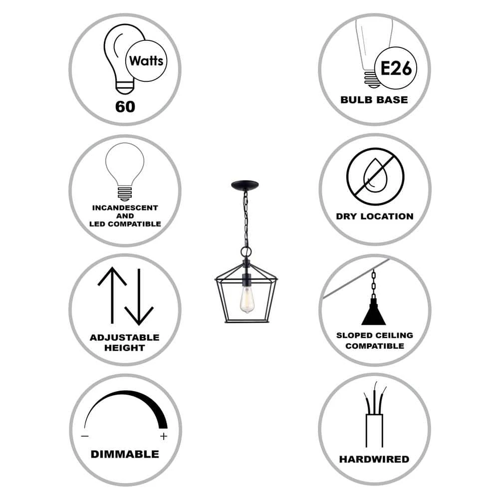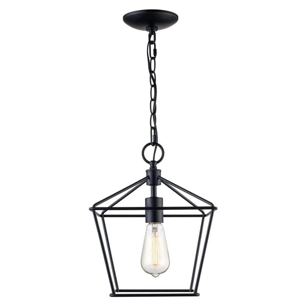 This farmhouse-inspired pendant from Bel Air Lighting provides focused lighting to smaller areas while offering a unique, rustic appeal to your home’s kitchen and dining spaces. This fixture is small in scale but grand in design with its pitched open roof and open-caged sides. The metal fixture is finished in black and contains no glass. A single light socket is housed inside the caged shade, where a vintage Edison style bub is recommended to highlight the industrial tone. The lantern-shaped pendant body hangs from a matching black chain and round ceiling plate with angle mount hardware, allowing for an adjustable height and sloped ceiling compatiblity. Mount as a single unit, or install as a set along a linear kitchen island or bar table.