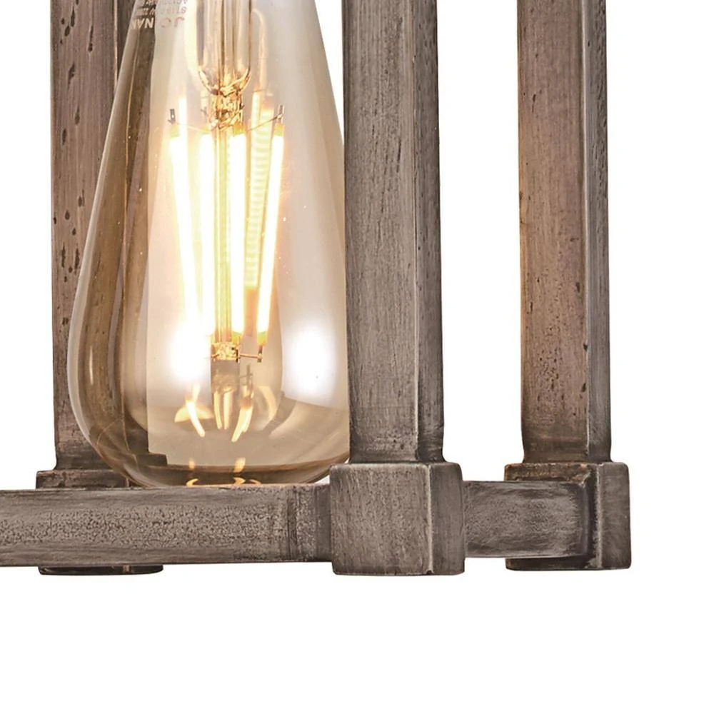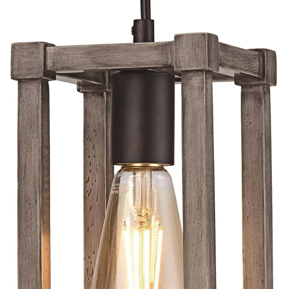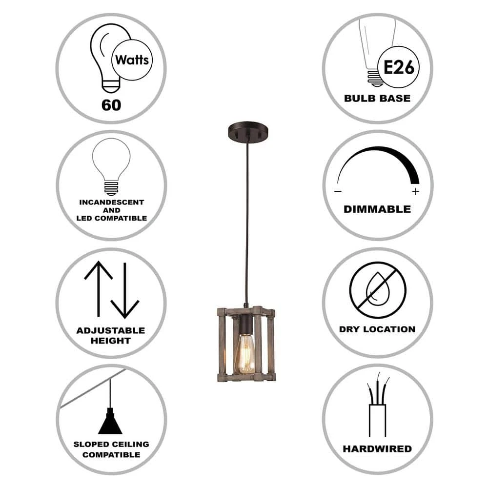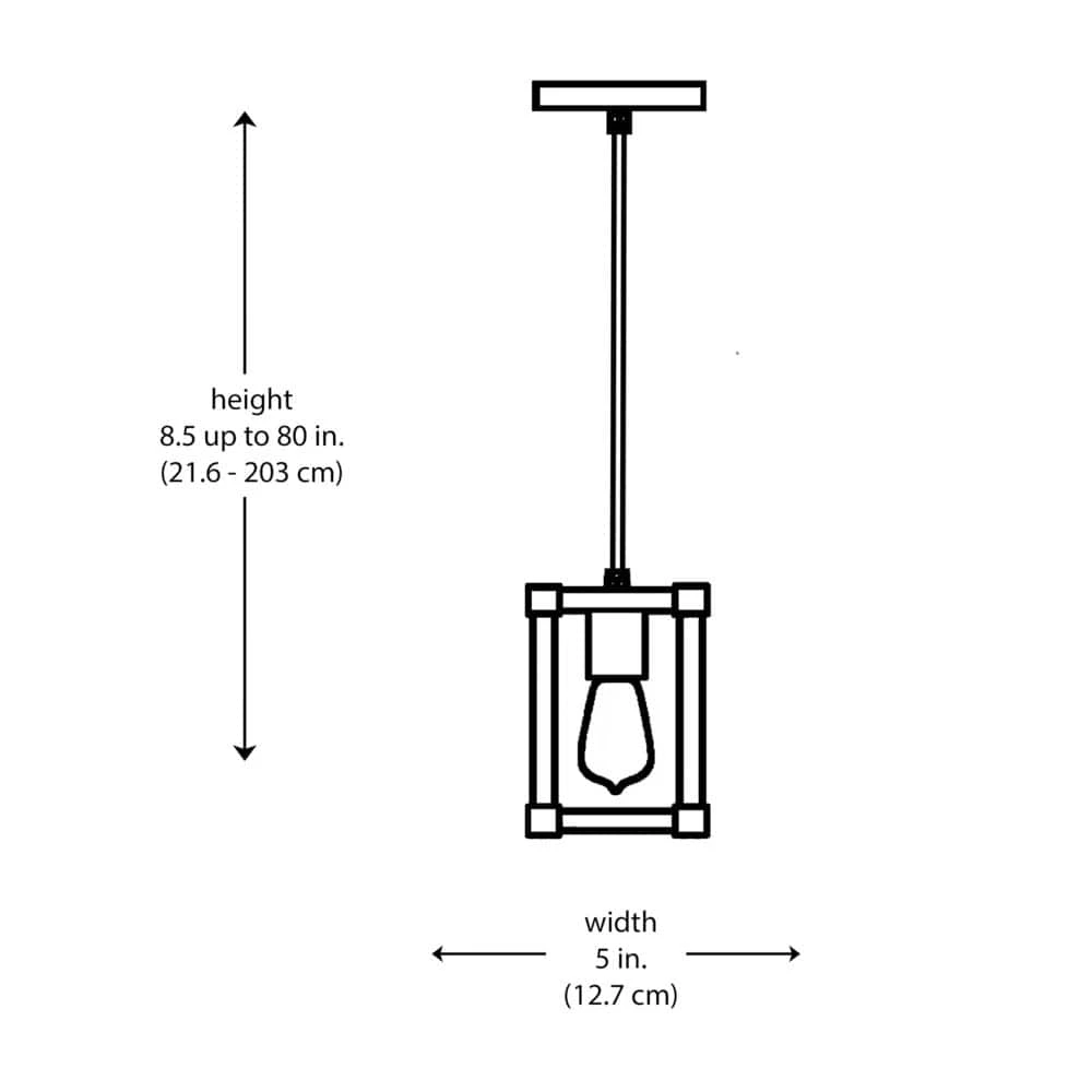 This single light mini pendant form Bel Air is sure to make a bold statement in your home’s kitchen and dining areas. The rustic style is complemented by the sleek black finish and open frame faux wood shade. The piece blends well in farmhouse and rustic styled interiors, and looks beautiful when hung in multiples along a linear kitchen island or bar table. A single 60-watt light bulb is housed in the shade, and can be easily accessed through the open-bottom design. A vintage, Edison style bulb is recommended to capitalize on the rustic feel of the piece. The rectangular shade hangs from a matching black wire, offering height adjustability and sloped ceiling compatibility.