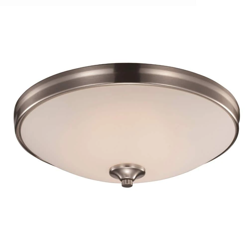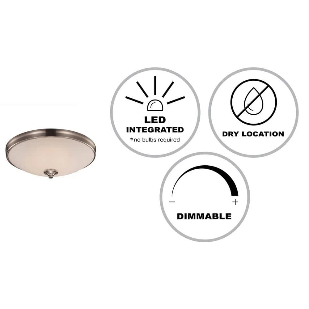 This LED flush mount from Bel Air Lighting is a modern ceiling light designed to suit a variety of home decor styles from transitional to contemporary. The functional piece is suitable for use in dry locations only, and works well in dining areas, entryways, bedrooms, closets, and more. Use as a single ceiling light in smaller spaces, or install as a set in larger rooms or along hallways for additional illumination. The fixture is constructed of a brushed nickel metal frame and includes frosted glass to house the integrated LED module. The rounded glass shade features a tapered shape, softens the illumination from the LEDs inside, and includes a decorative finial piece to keep everything in place. The integrated LED design is low maintenance as you will never need to replace the bulbs for the life of the fixture. Matching hardware and instructions are included for an easy flush mounted installation. Shop the collection for additional sizes and finish options.