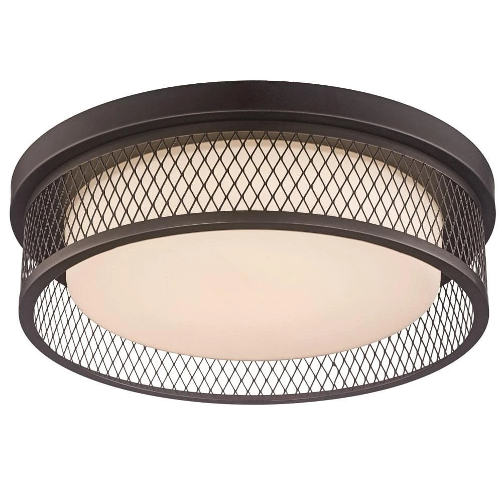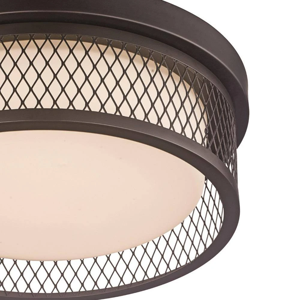 This LED flush mount from Bel Air Lighting is an industrial inspired ceiling light designed to suit a variety of home decor styles from transitional to modern. The functional piece is suitable for use in damp or dry locations and works well in dining areas, bathrooms, bedrooms, closets, and more. Use as a single ceiling light in smaller spaces, or install as a set in larger rooms or along hallways for additional illumination. The fixture is constructed of a bronze metal frame and includes frosted glass to house the integrated LED module. The rounded glass shade softens the illumination from the LEDs inside and includes a bronze metal cage-style outer shade that highlights the industrial tone. The integrated LED design is low maintenance as you will never need to replace the bulbs for the life of the fixture. Matching hardware and instructions are included for an easy flush mounted installation.