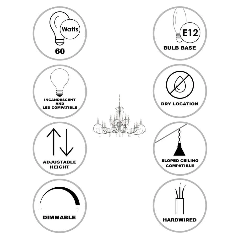 - Uses (18) candelabra base 60-Watt maximum bulbs, not included