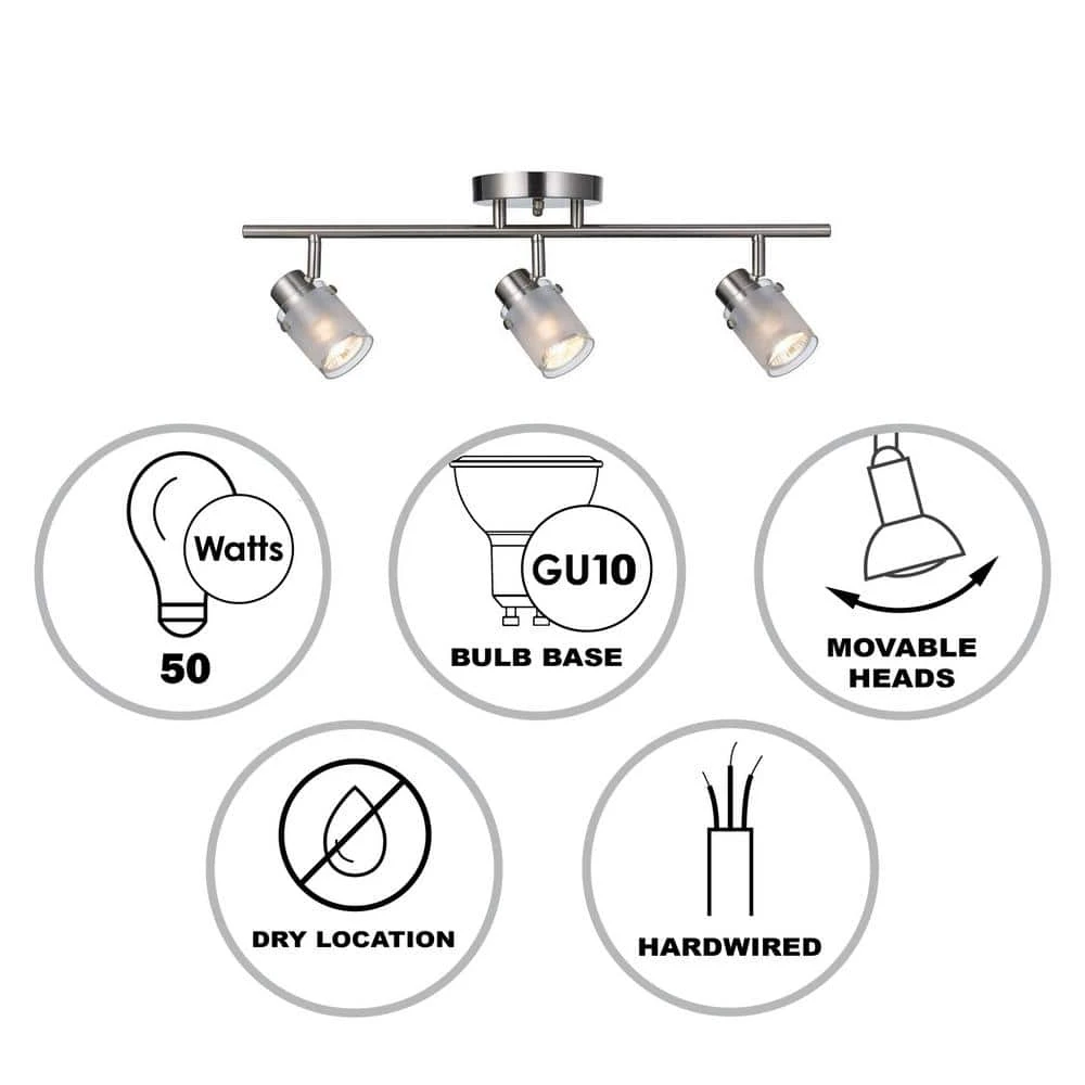 - Uses (3) 50-watt GU10 base halogen bulbs, not included