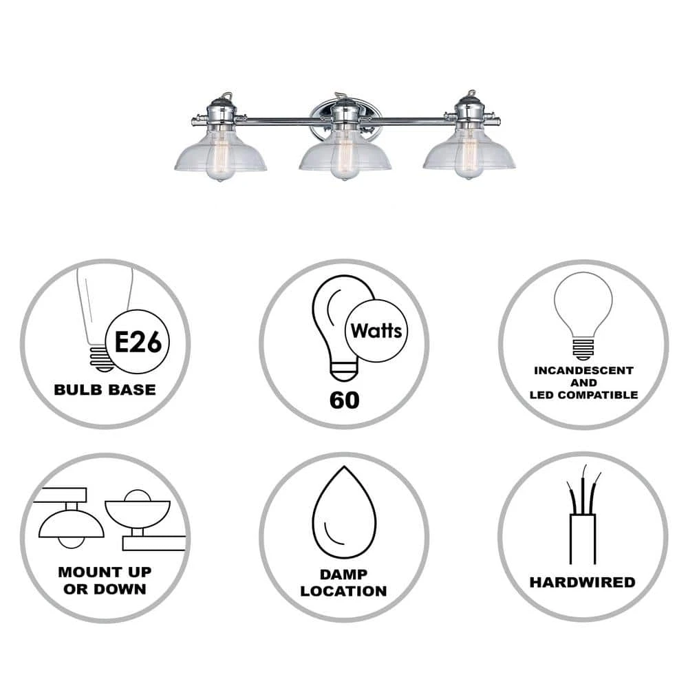 - Vanity light uses (3) medium base 60-watt bulbs, not included
