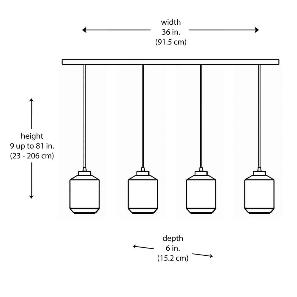 - Mounting canopy measures 36″ wide x 5″ deep x 0.75″ extension from ceiling