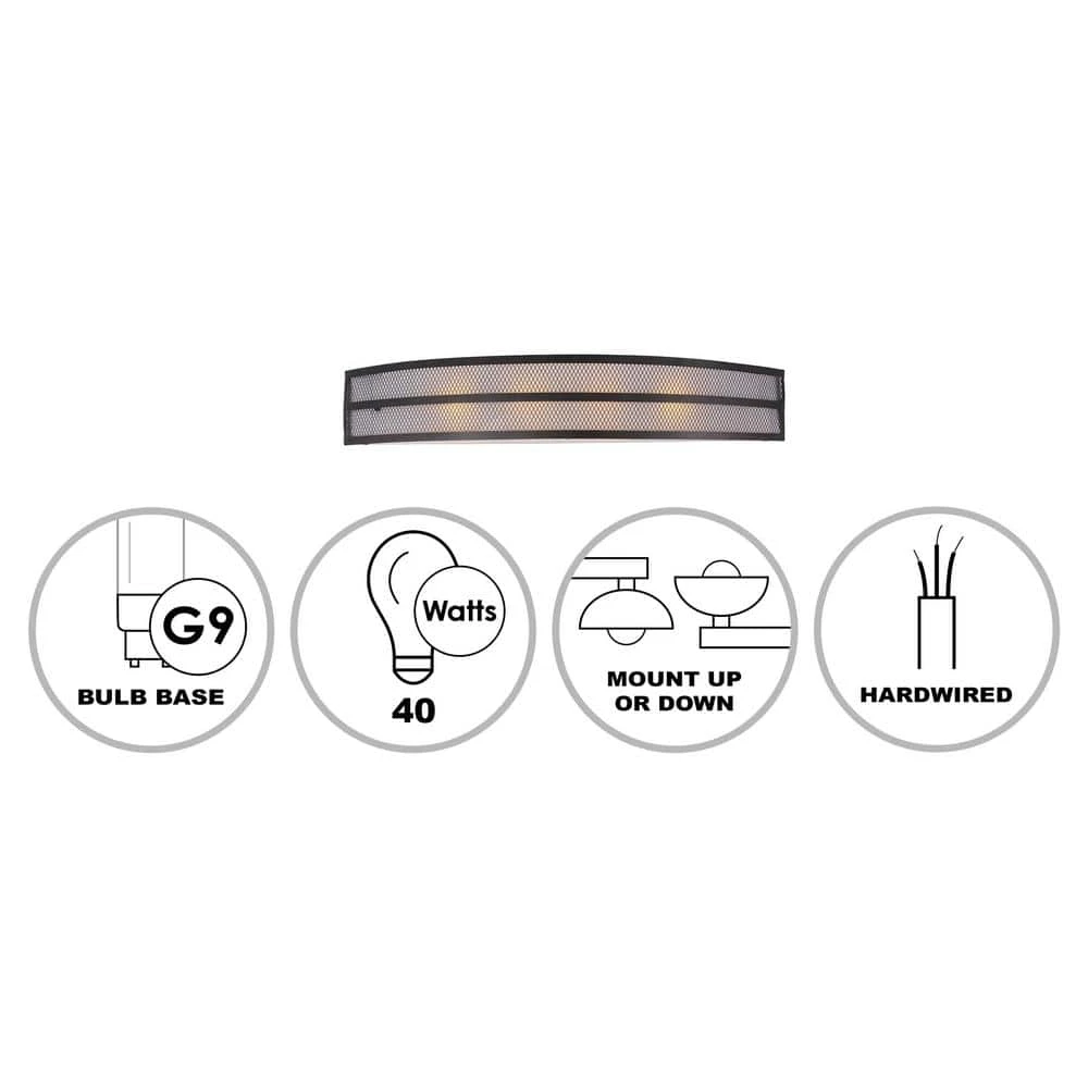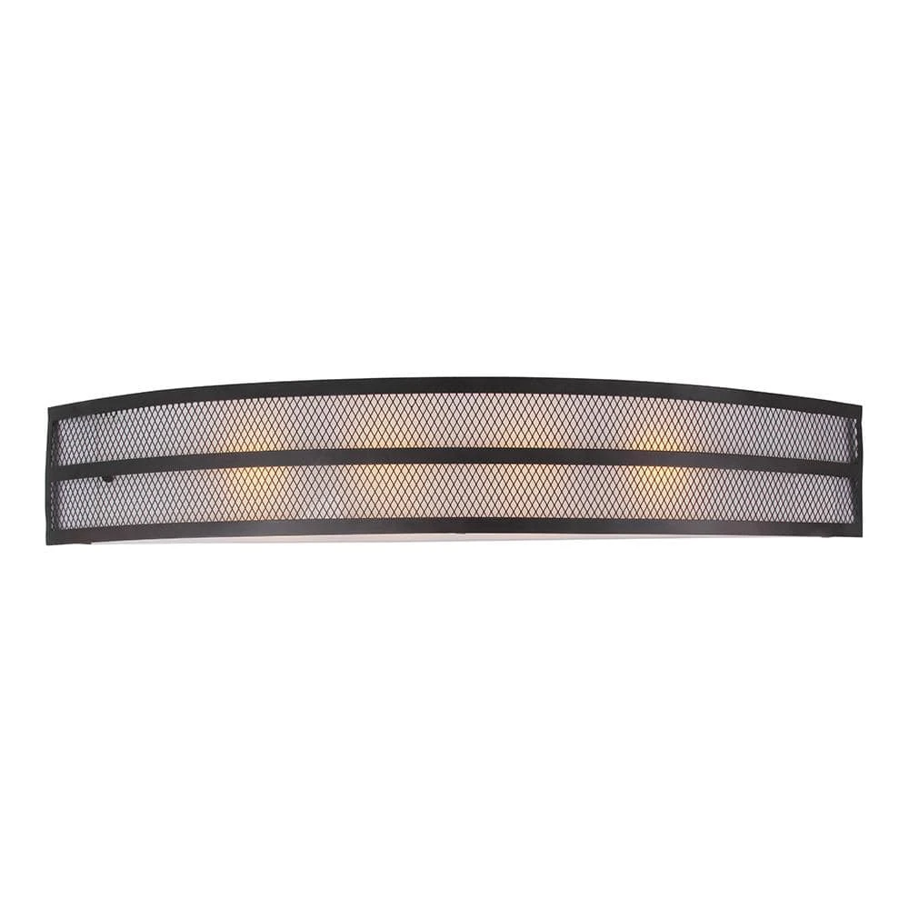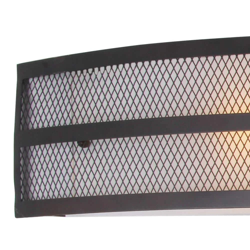 Industrial styling meets functionality in this 32 inch vanity bar from Bel Air Lighting. The piece features a black finish and dual shaded design; a white opal glass inner shade diffuses the light from the four bulbs for even illumination while the black, metal mesh outer shade protects the glass and adds an industrial tone. Four 40-watt halogen light bulbs are included with the fixture. This vanity light is low profile, extending only 4 inches out from the wall. Mount in bathroom and powder rooms above a vanity sink or mirror for stylistic task lighting.