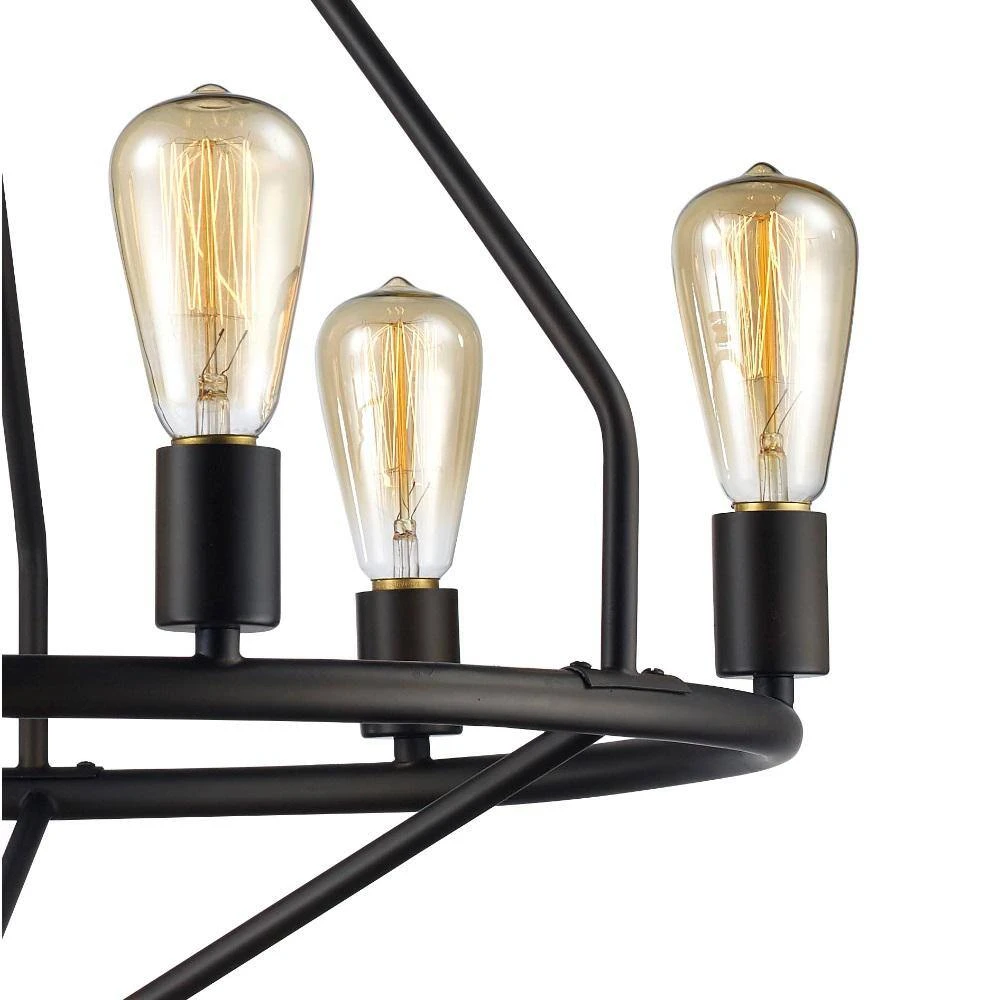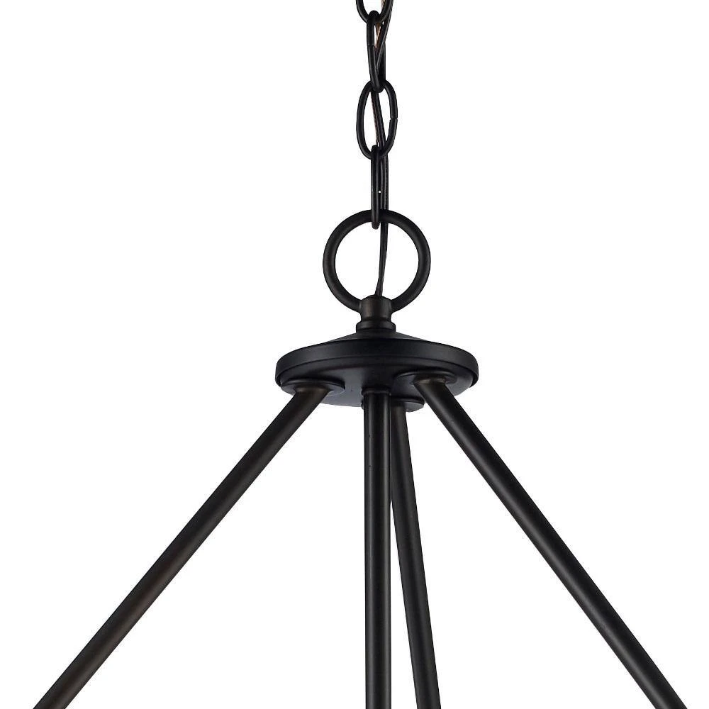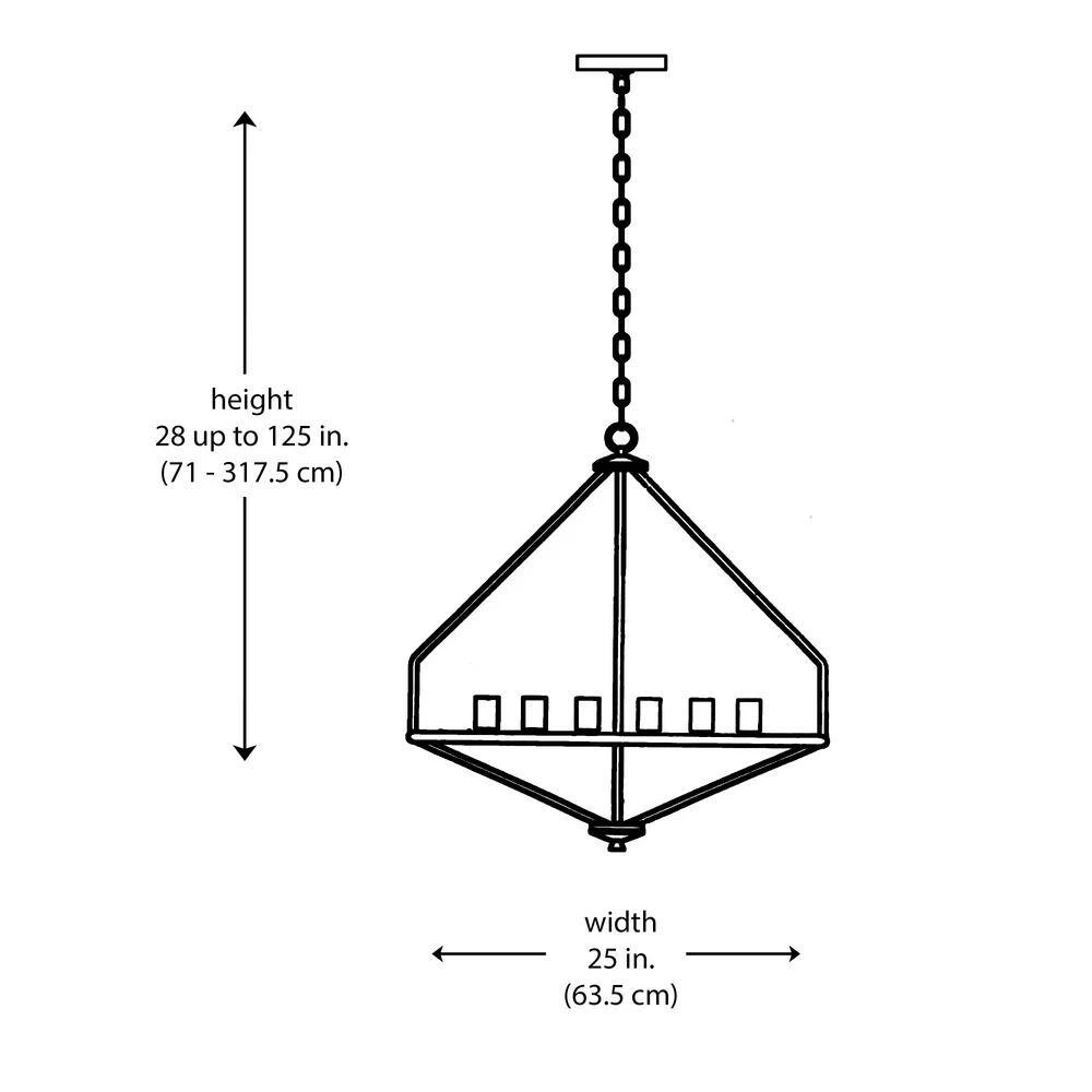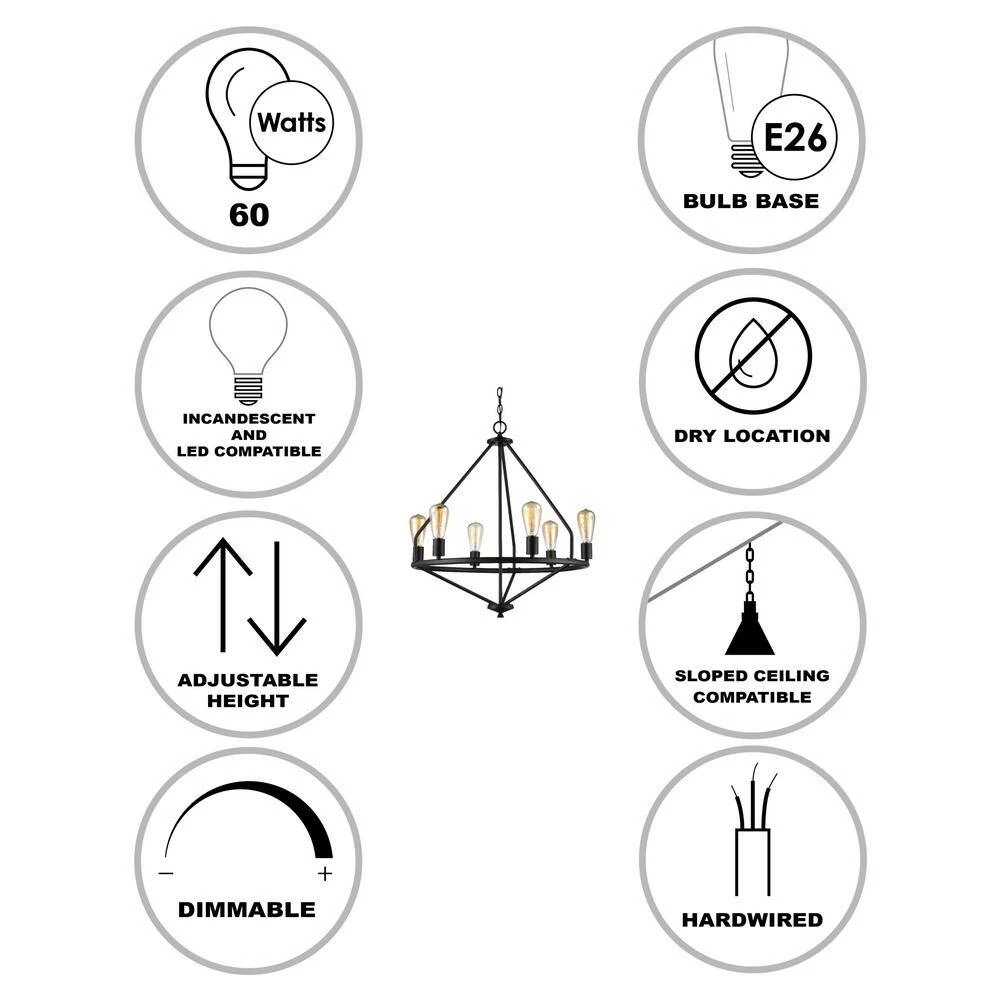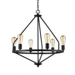 Bel Air Lighting’s rustic, wagon wheel chandelier collection offers a stylish way to bring functional illumination to your home’s entryways, formal dining room areas, and kitchen tables. The 25 inch round chandelier is the smallest in the collection and features a 6-light design. Each of the bulbs is evenly spaced around the circular frame, held in place by metal candle-style socket covers. A diamond shape metal cage holds the chandelier body in place. The rubbed oil bronze finish compliments the rustic styling and adds a touch of warmth to the piece that will translate well to your home’s interior decor. The wagon wheel body hangs from a matching chrome chain, offering height adjustability and sloped ceiling compatiblity.