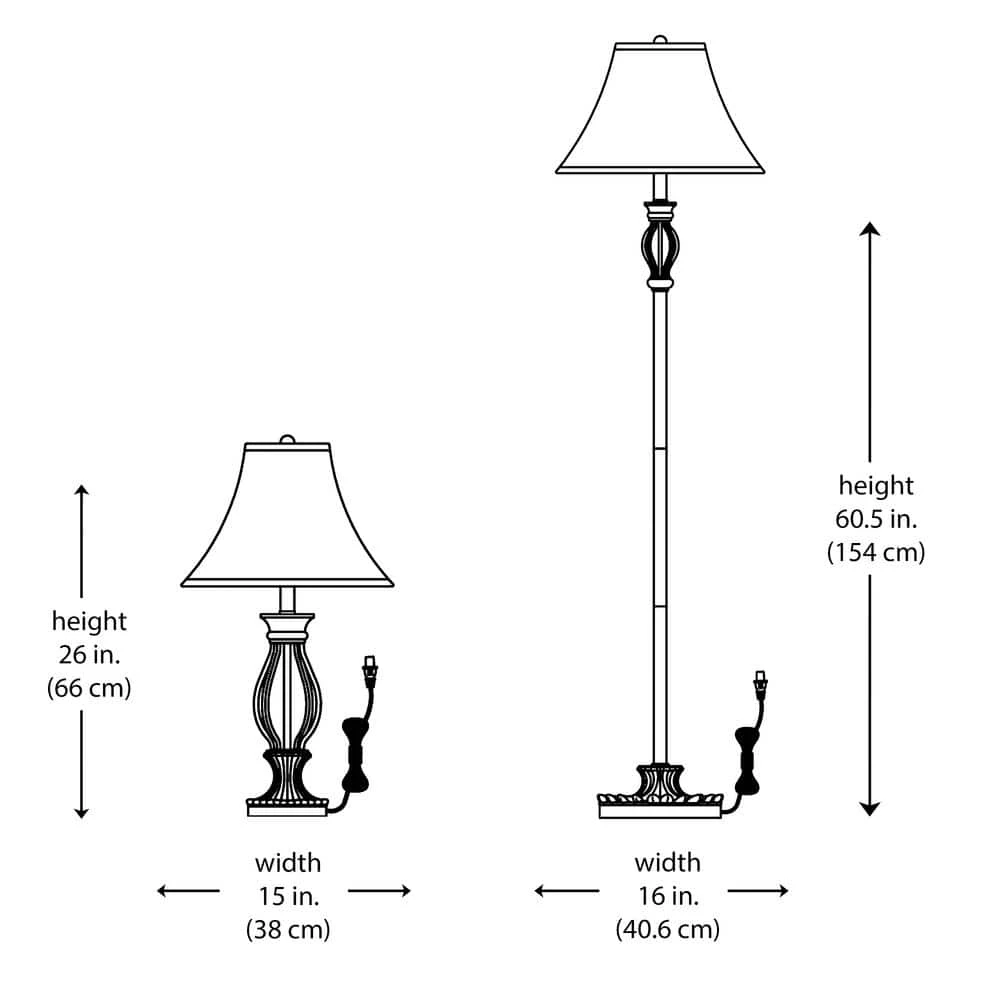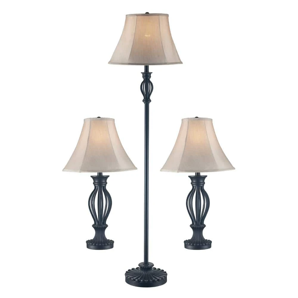 - Matching set of 3: includes 1 floor lamp and 2 table lamps