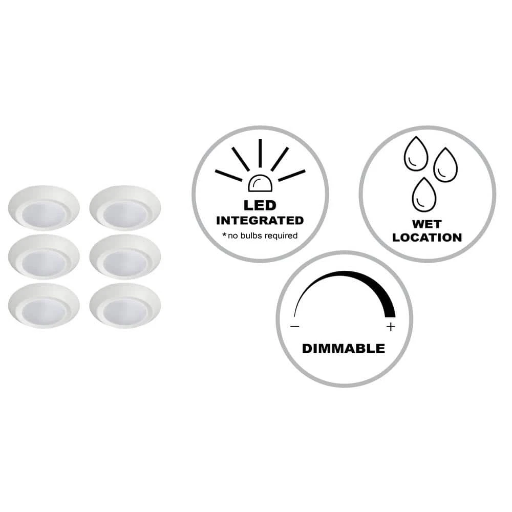 The Bel Air miniature disk light is a low profile-style ceiling fixture that mimics the look of recessed lighting without having to be recessed into the ceiling. This 7.5-inch round fixture is finished in white, designed to coordinate with a variety of interior decor styles. The frosted acrylic lens keeps the unit lightweight, and allows the LED lights to cast a soft ambient light over a wide area. The integrated LED design is low maintenance, as you will never need to replace bulbs for the life of the fixture. The Energy Star Certified LED module emits 1000 lumens of warm white light, comparable to a 75-watt incandescent light bulb, and can be dimmed when using a compatible LED dimmer switch. This ceiling light is small enough to work as a single unit in hallways and closets, and versatile enough to install in multiples in larger spaces such as bedrooms, kitchens, and dining rooms where additional light is needed and recessed lighting is not an option.