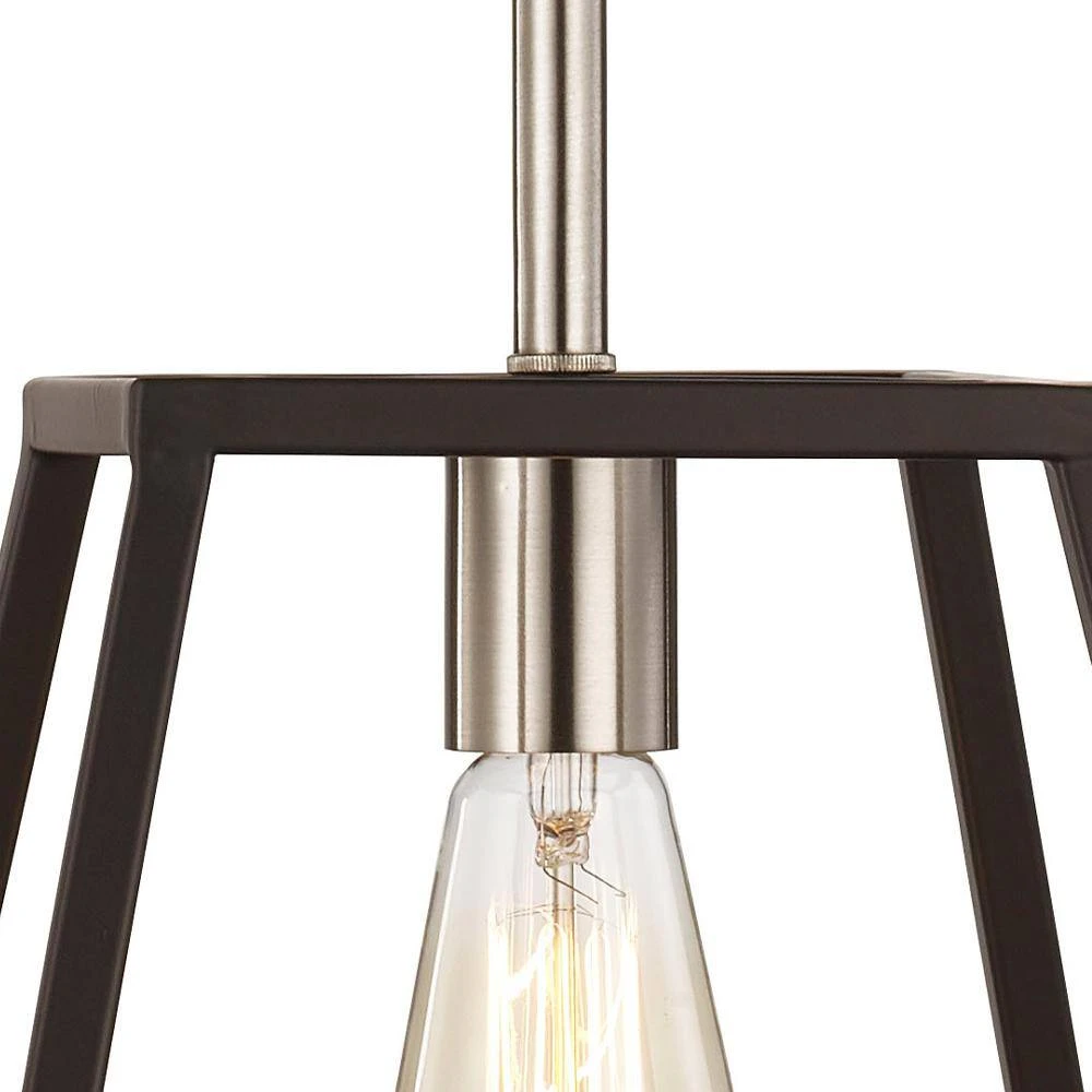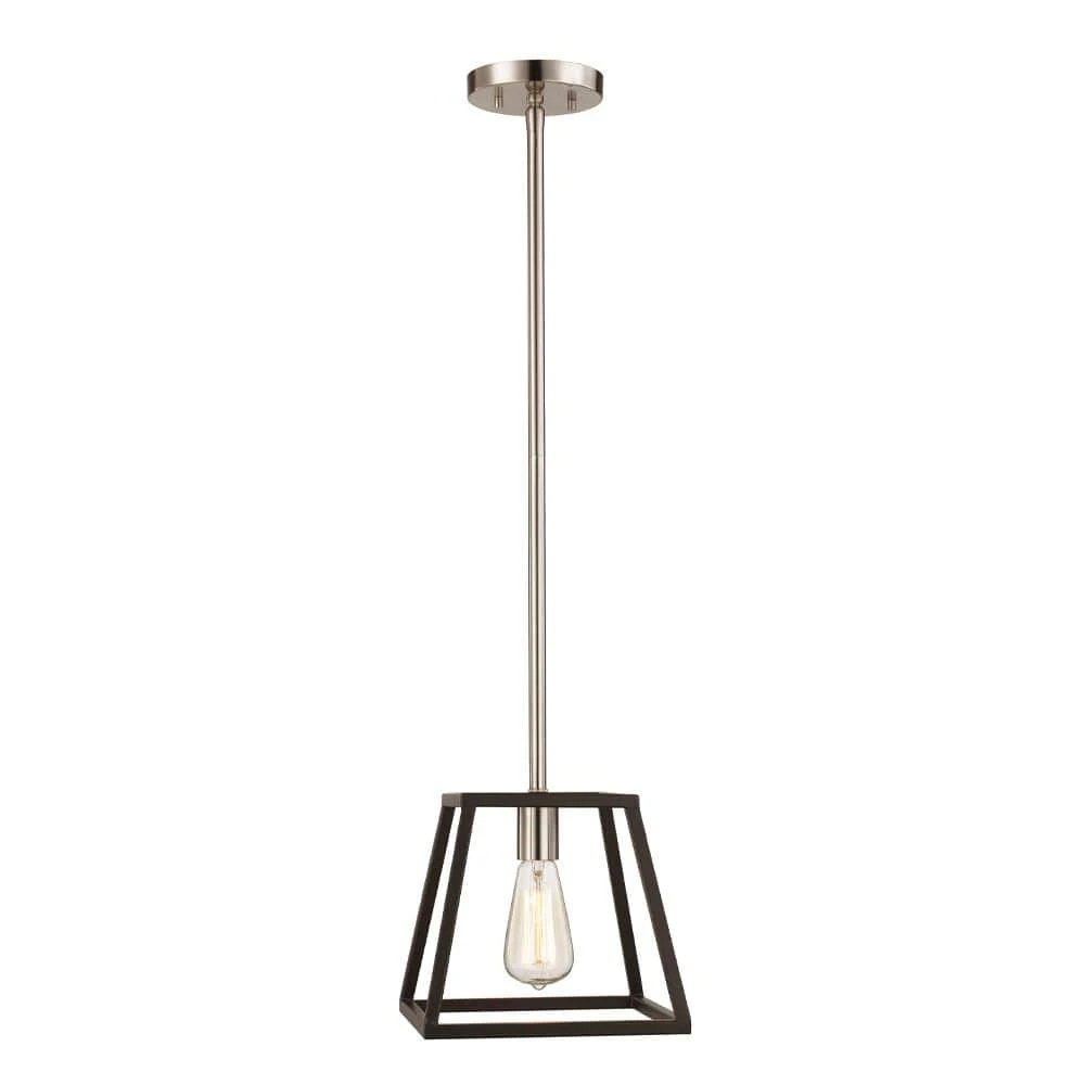 The Adams 9.25 inch square mini pendant provides abundant light to your kitchen and dining room areas while adding functional style and an interesting design. Transform your living spaces with this industrial fixture that enhances a variety of interior design themes, from farmhouse and modern to transitional. This single light, four-sided pendant has an open metal frame and is fixed to the ceiling by a metal extension rod. Various sizes of extension rods are included for an adjustable hanging height. The pendant is secured to the ceiling with a round brushed nickel canopy plate. Mount this fixture as a single piece, or as a set in multiples along a kitchen island or dining room table for additional illumination. Shop the Adams Collection for additional interior lighting styles and finishes.