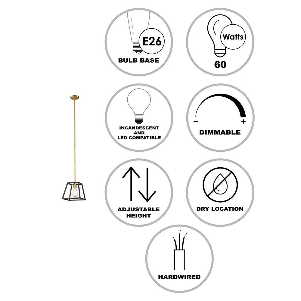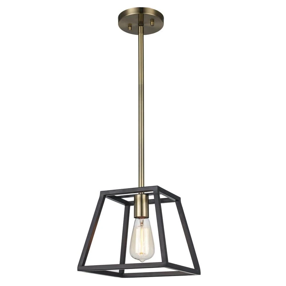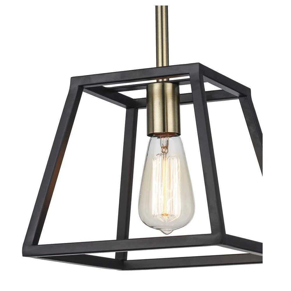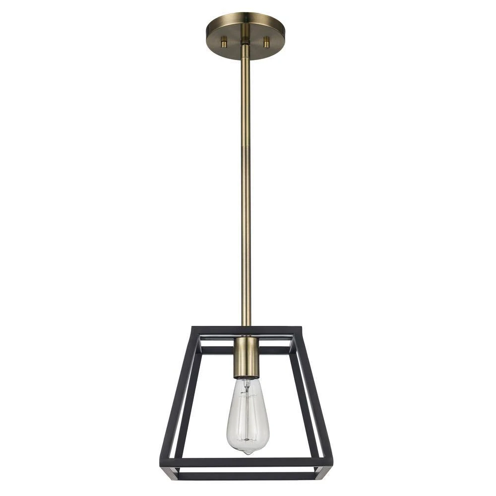 The Adams 9.25 inch square mini pendant provides abundant light to your kitchen and dining room areas while adding functional style and an interesting design. Transform your living spaces with this industrial fixture that enhances a variety of interior design themes, from farmhouse and modern to transitional. This single light, four-sided pendant has an open metal frame and is fixed to the ceiling by a metal extension rod. Various sizes of extension rods are included for an adjustable hanging height. The pendant is secured to the ceiling with a round antique brass canopy plate. Mount this fixture as a single piece, or as a set in multiples along a kitchen island or dining room table for additional illumination. Shop the Adams Collection for additional interior lighting styles and finishes.