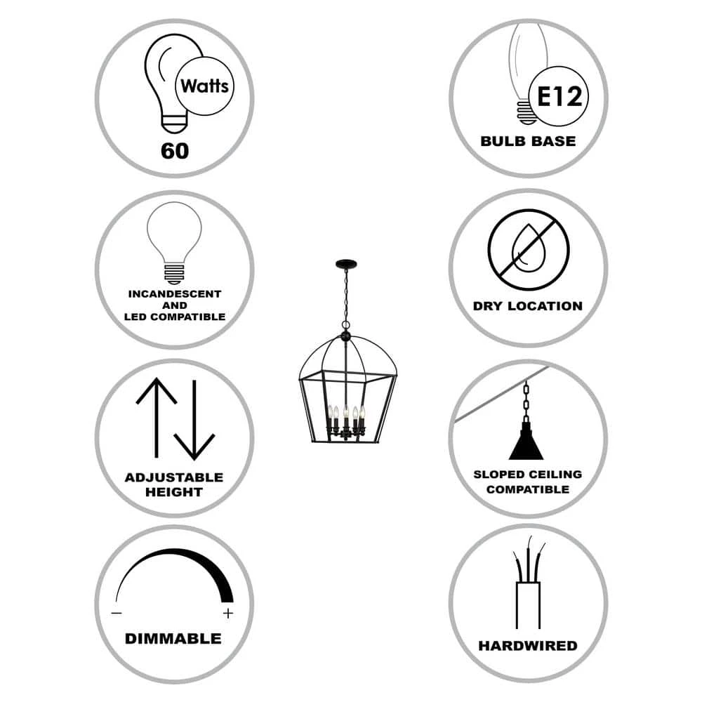 - Uses (5) candelabra E12 base 60-watt bulbs, not included