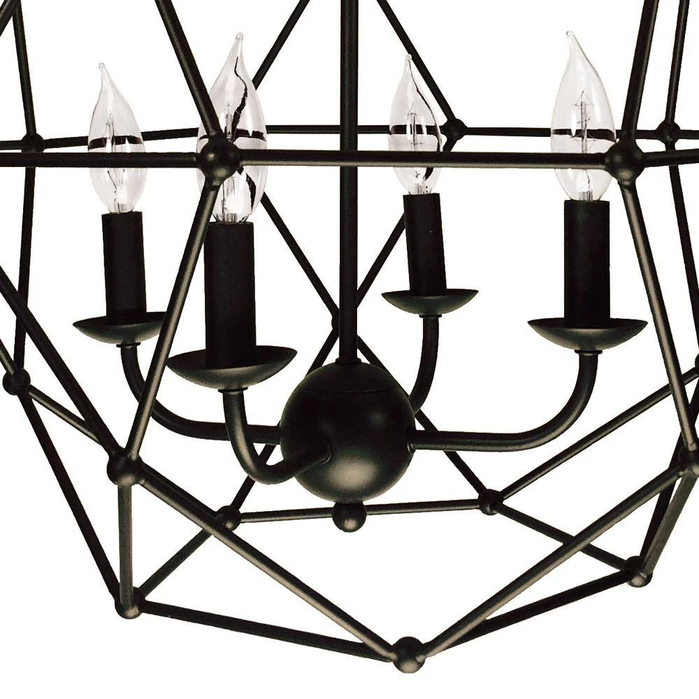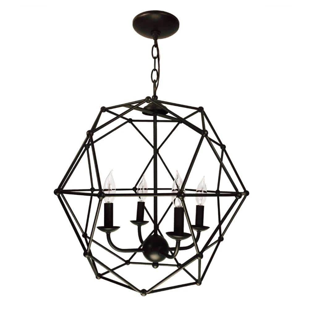 The Avo Collection from Bel Air lighting exhibits unique, indoor statement pieces designed to add functional illumination and decorative appeal to your home’s foyer entryways, dining rooms, and kitchen areas. The Avo 20 inch round industrial-inspired pendant is the larger option in the collection and features a rustic rubbed oil bronze finish and a round, open-cage style globe shade. Four candelabra bulbs are in full view behind the geometric shade, allowing ample light output for medium to large sized rooms. This pendant hangs from a round ceiling plate and matching bronze chain, offering height adjustability and sloped ceiling compatibility.