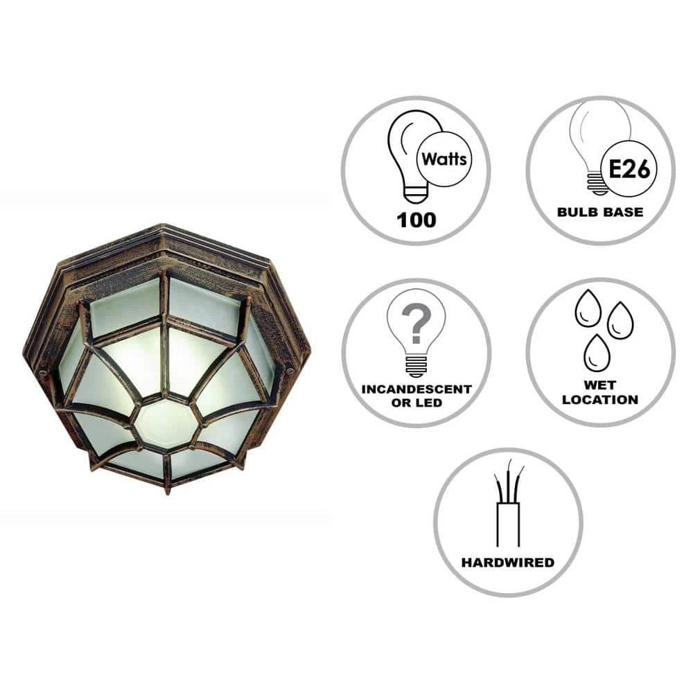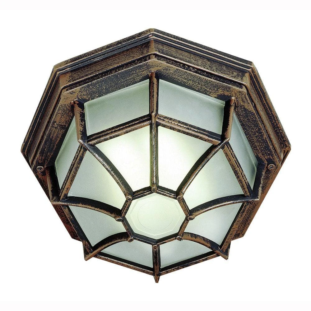 Give your outdoor living space a new look with the Benkert 11-in. flush mount. This ceiling light features a rust finish and geometric design that is perfect for cottage and farmhouse decor styles. You’ll have even illumination on your porch or patio with the white frosted glass shade and it’ll last you over time with a durable cast aluminum construction with a powder-coated finish to resist weather. This flush mount can be used as a ceiling fixture or a wall light and uses one 100-W bulb.