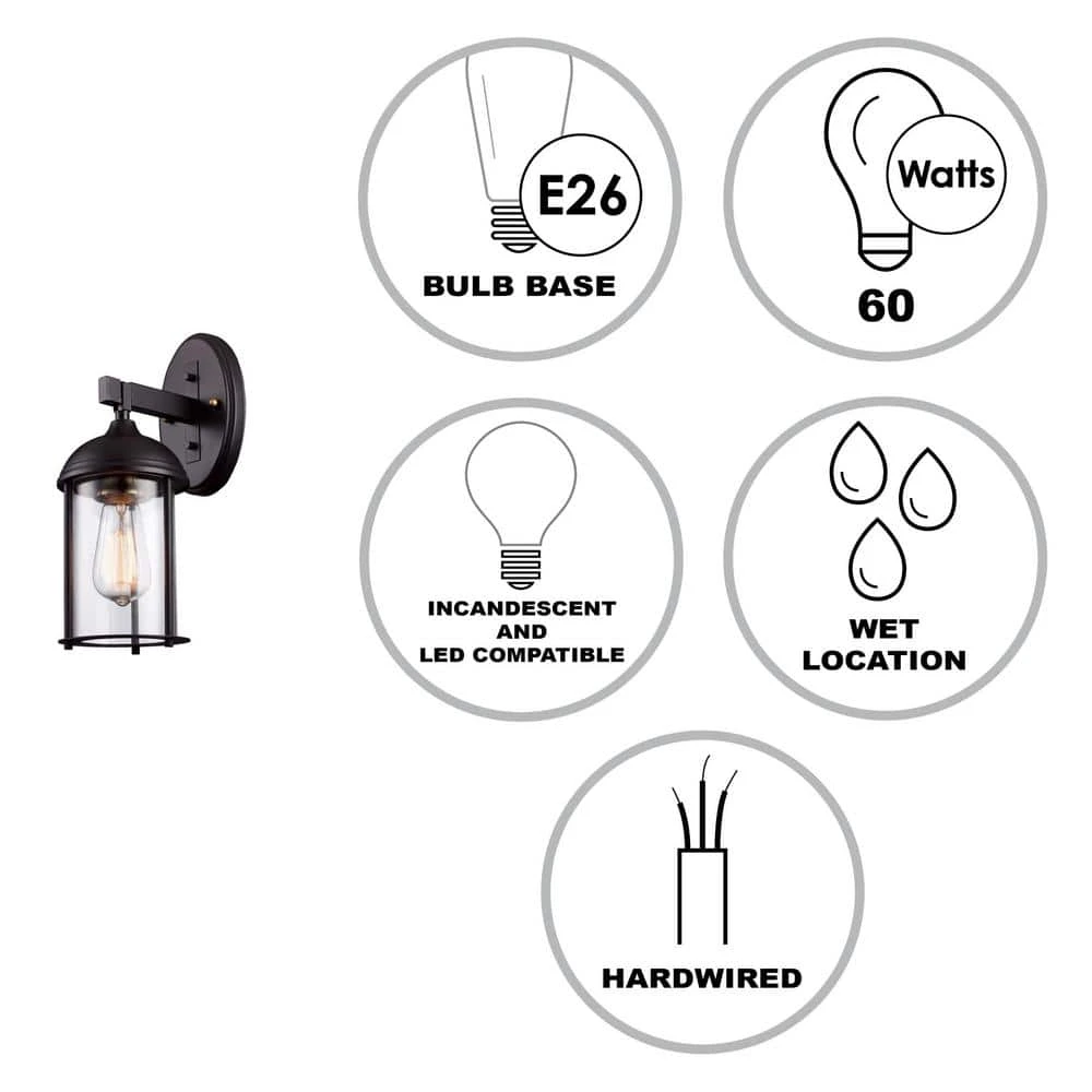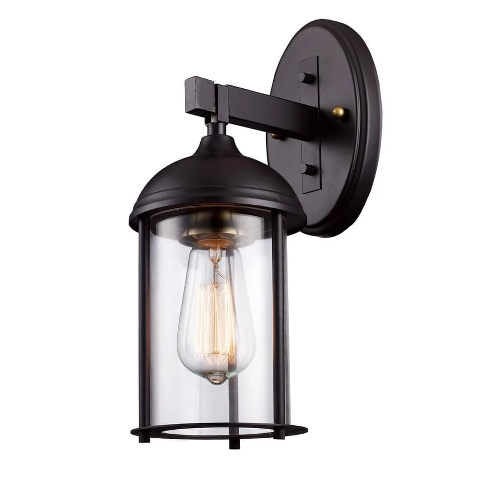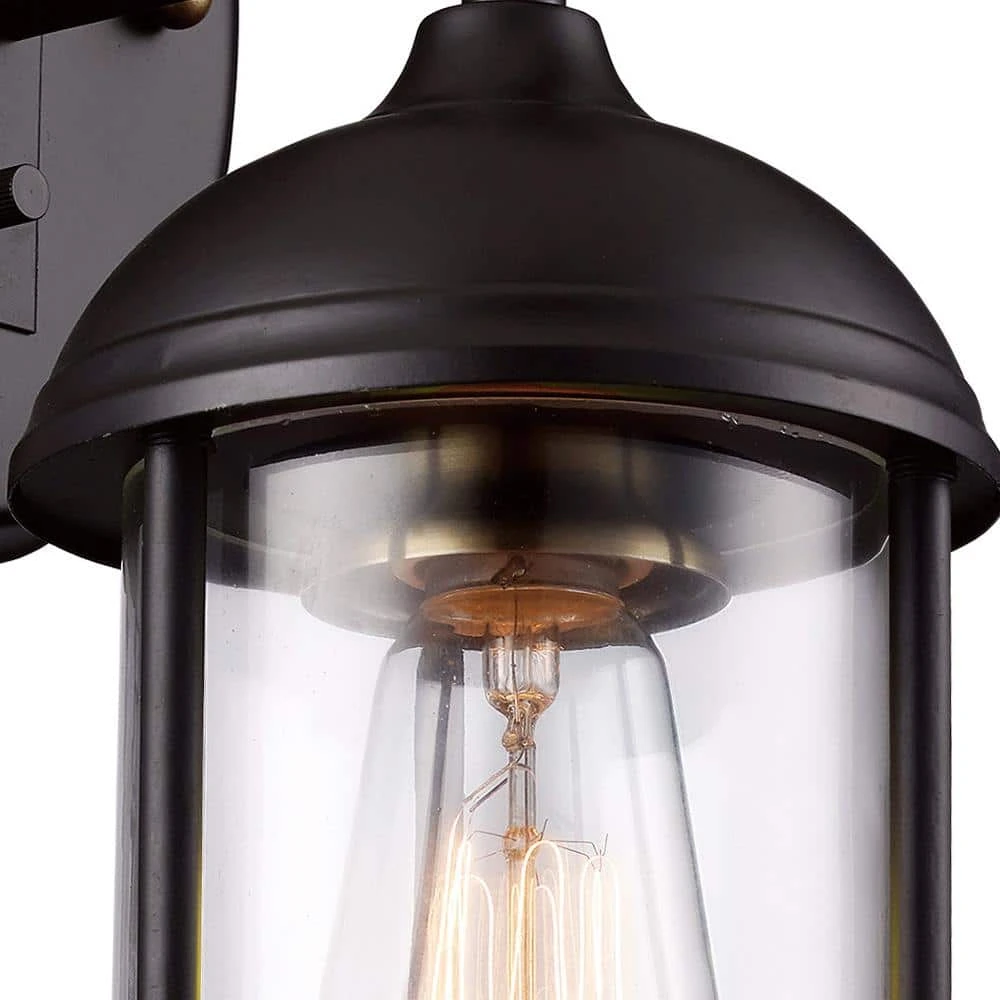 The Blues Collection from Bel Air presents modern exterior wall lighting designed to showcase any outdoor living space with both style and functionality. The quality craftsmanship is inspired by updated traditional design themes and maintains a distinctive look as it provides accent and area lighting to porches, deck spaces, exterior walkways, and driveways. The cylindrical clear glass shade is housed in a durable oiled bronze metal frame, and antique gold accents compliment the bronze finish throughout the piece. The sconce body attaches to a durable metal arm and oval shaped wall plate to hold up in harsh weather conditions. A single bulb can be seen through the clear glass, and an Edison style decorative bulb is recommended for added style. The Blues Collection’s simple elegance allows it to compliment a variety of exterior home styles.