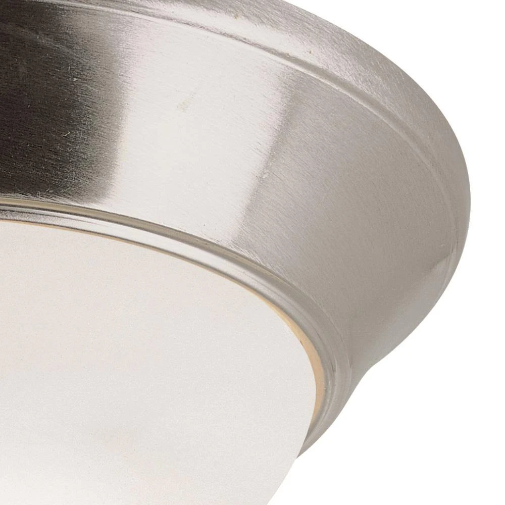 The Bolton Collection from Bel Air exhibits interior ceiling lights inspired by minimalist design themes, designed to upgrade your home’s outdated fixtures and provide functional lighting to a variety of spaces. The Bolton 12-inch round flush mount is the smallest in the collection, and has a low profile construction for use in rooms with low ceiling clearance. A white frosted glass bowl-style shade screws into the metal housing, allowing for warm and even illumination from the two CFL bulbs inside to light your home. This flush mount can be used in dry or damp locations, making it easy to use in entryways, hallways, bedrooms, bathrooms, and closets. Shop the Bolton Collection for additional finishes and sizes.