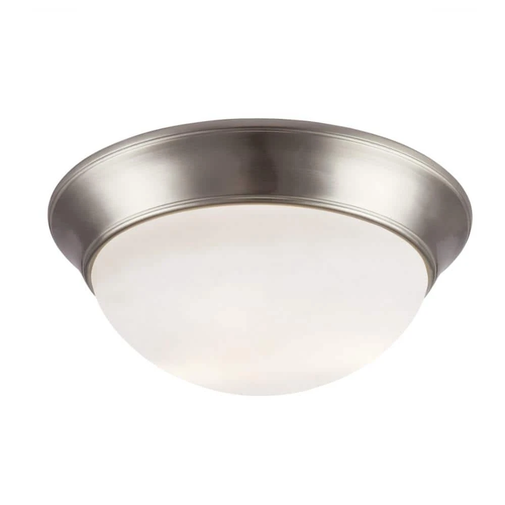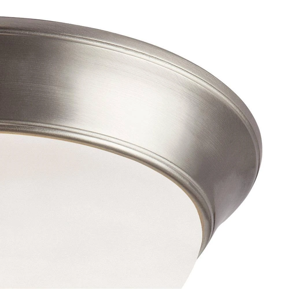 The Bolton Collection from Bel Air exhibits interior ceiling lights inspired by minimalist design themes, designed to upgrade your home’s outdated fixtures and provide functional lighting to a variety of spaces. The Bolton 14-inch round flush mount is the middle size in the collection, and has a low profile construction for use in rooms with low ceiling clearance. A white frosted glass bowl-style shade screws into the metal housing, allowing for warm and even illumination from the two CFL bulbs inside to light your home. This flush mount can be used in dry or damp locations, making it easy to use in entryways, hallways, bedrooms, bathrooms, and closets. Shop the Bolton Collection for additional finishes and sizes.