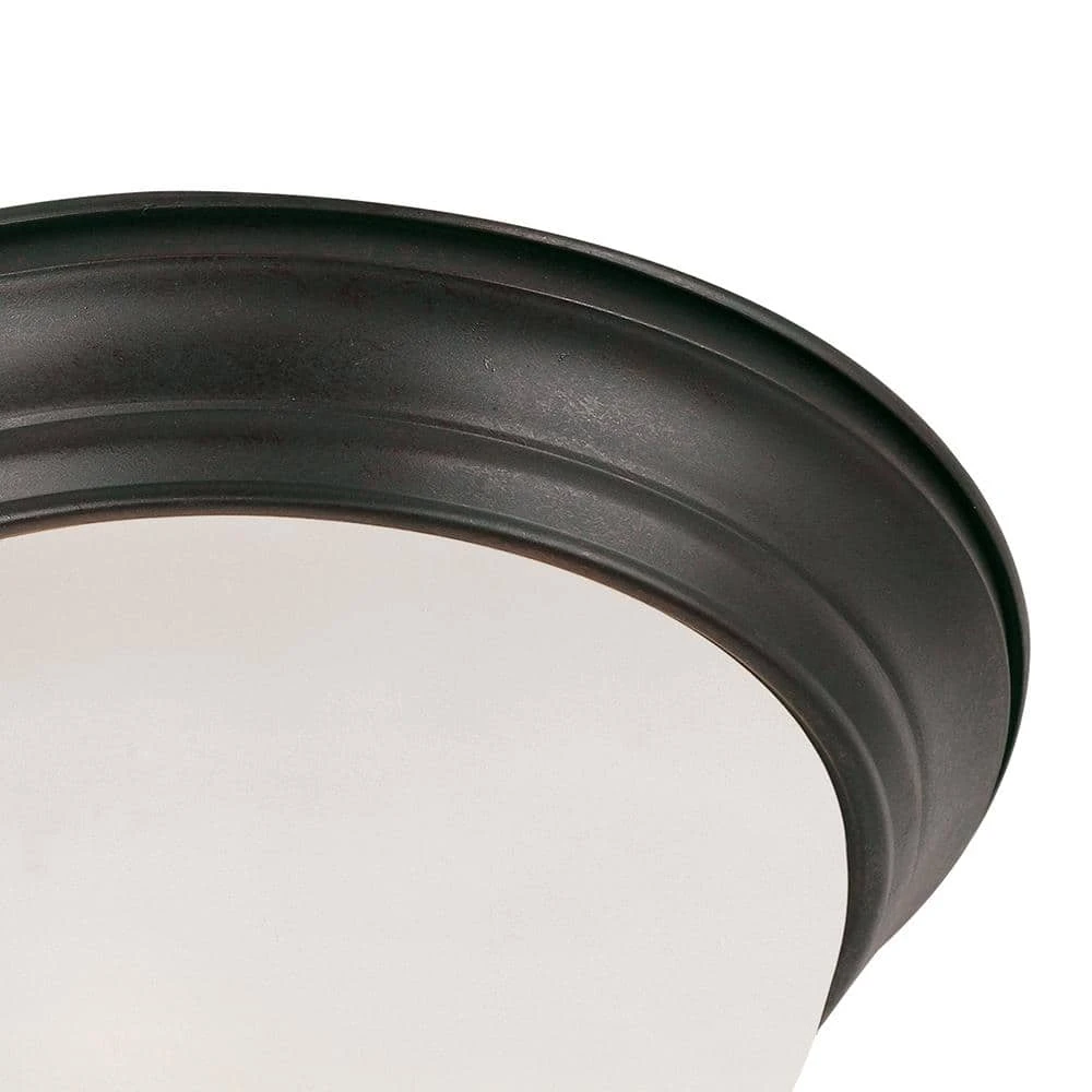 The Bowers collection combines traditional design themes with functionality, exhibiting unique interior lighting suitable for a variety of home types. The Bowers 11 inch round flush mount is the smallest ceiling light in the collection, and casts a soft ambient light over a wide area. The minimal aesthetic is ideal to blend with any decor while also illuminating a variety of interior living areas. This fixture has a white frosted glass bowl shade and a rubbed oil bronze metal frame. Two 60-watt light bulbs are housed inside the shade, and can be dimmed when used with a compatible light bulb and dimmer switch combination. The Bowers family of flush mounts are rated safe for use in damp location such as bathrooms, making them an ideal choice for any room of the house. Shop the complete Bowers Collection for coordinating styles and additional finishes.