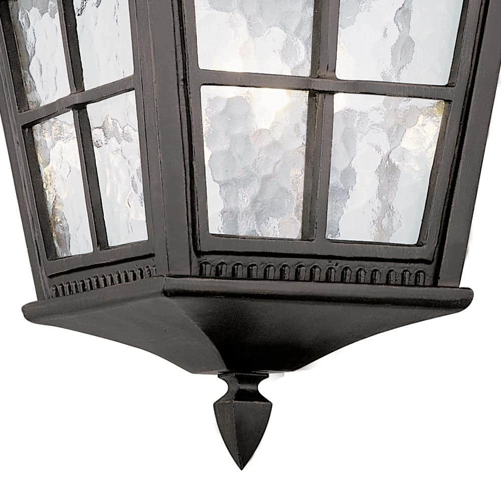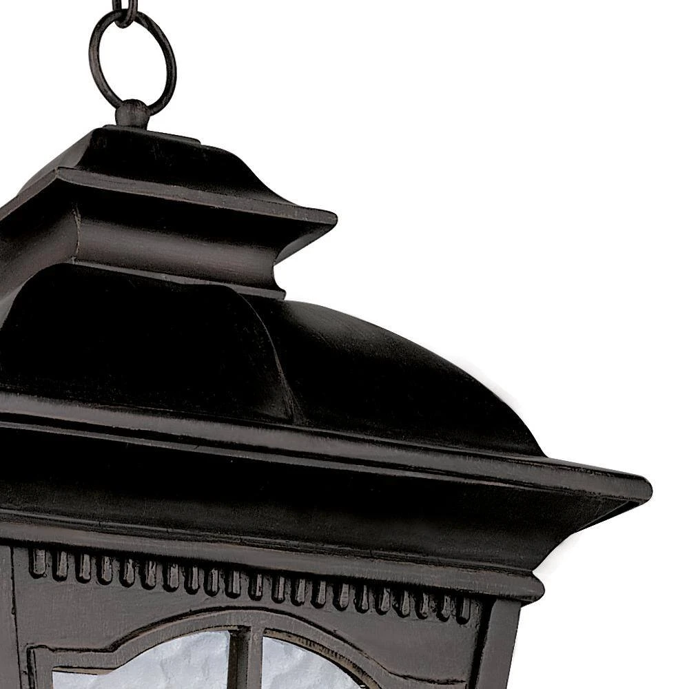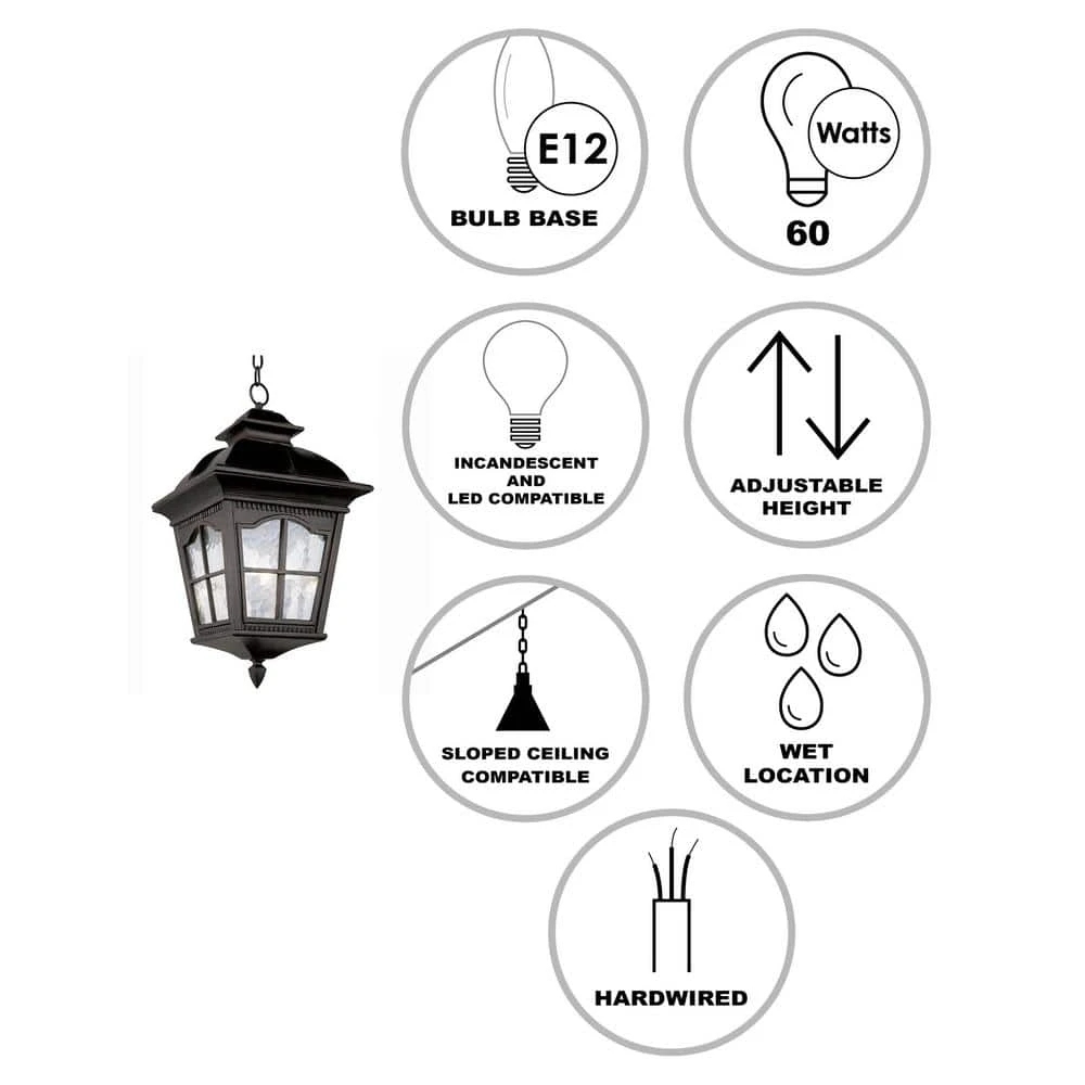 The Briarwood collection from Bel Air exhibits colonial style outdoor lighting that captures the old world charm and picturesque features of classic lantern lighting. The Briarwood outdoor pendant sets a warm and inviting tone for porch entryways and covered patios while providing ample illumination from the three candelabra bulbs inside (not included). The black finish is complimented by four sides of water glass paned windows, which allow the lights to shine brightly out from within. The lantern body hangs from a matching black chain, offering an adjustable height and sloped ceiling compatibility. A variety of coordinating outdoor lights are available, shop the Briarwood collection.