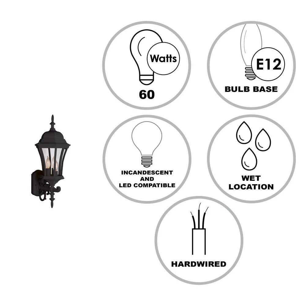 - Uses (3) candelabra E12 base 60-watt bulbs, not included
