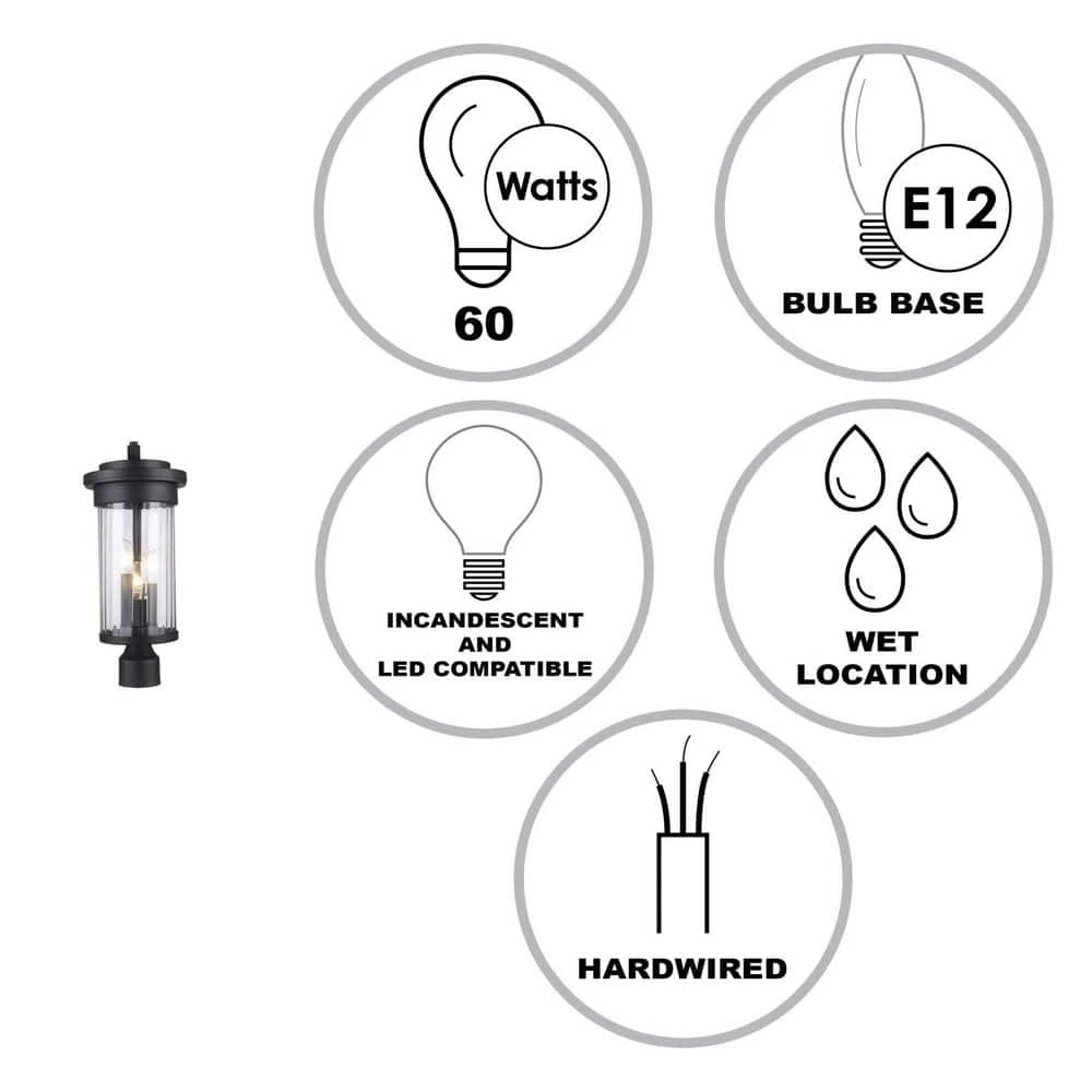 - Uses 3 candelabra E12 base 60-Watt bulbs, not included
