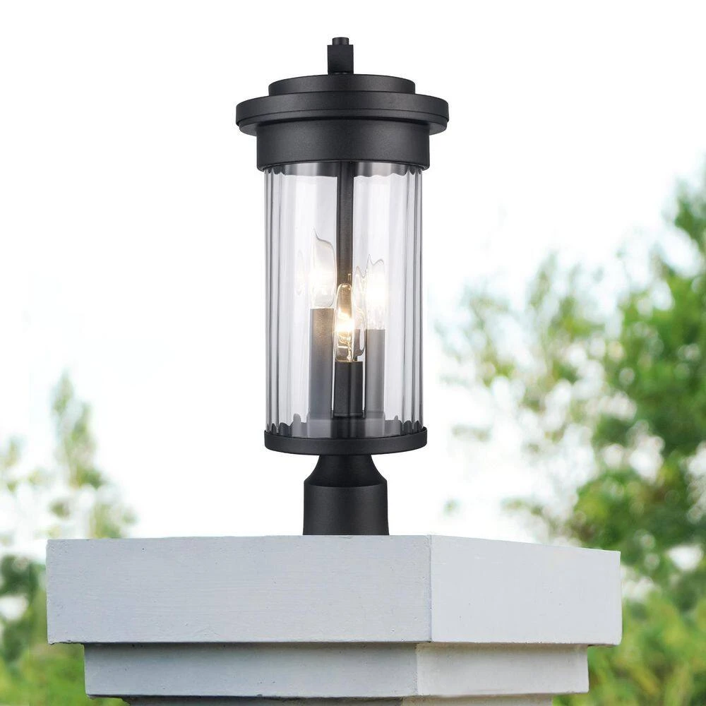 The Carmel Collection from Bel Air exhibits transitional outdoor lights that are ideal for adding functional area lighting to a variety of exterior living spaces. The Carmel post mount light is inspired by a lantern design and will add a decorative touch to walkways, pathways, steps and landscape areas. The fixture is constructed of metal and a clear glass shade with a decorative fluted design that is fully enclosed, protecting the light bulbs inside from harsh weather conditions. The metal is finished in black to coordinate with a variety of exterior home styles and with existing black-finished fixtures and hardware. This fixture requires a hardwired connection and can easily be mounted on standard light poles, pier mount bases and column adapters. Shop the Carmel collection for coordinating outdoor wall lights and hanging ceiling lighting.