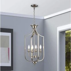 Lacey 4-Light Black and Chrome Caged Farmhouse Hanging Kitchen Pendant Light by Bel Air Lighting