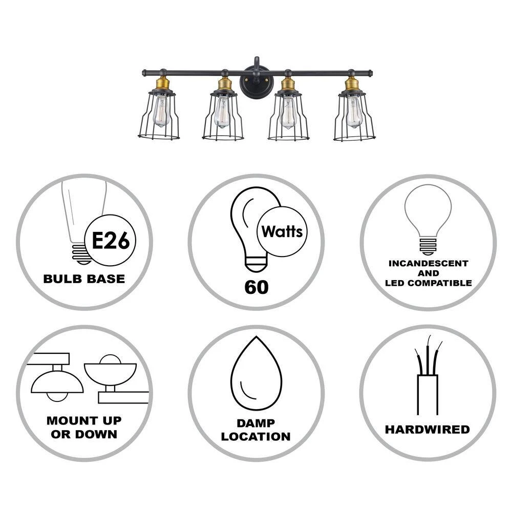 - Uses (4) medium base 60-watt bulbs, not included