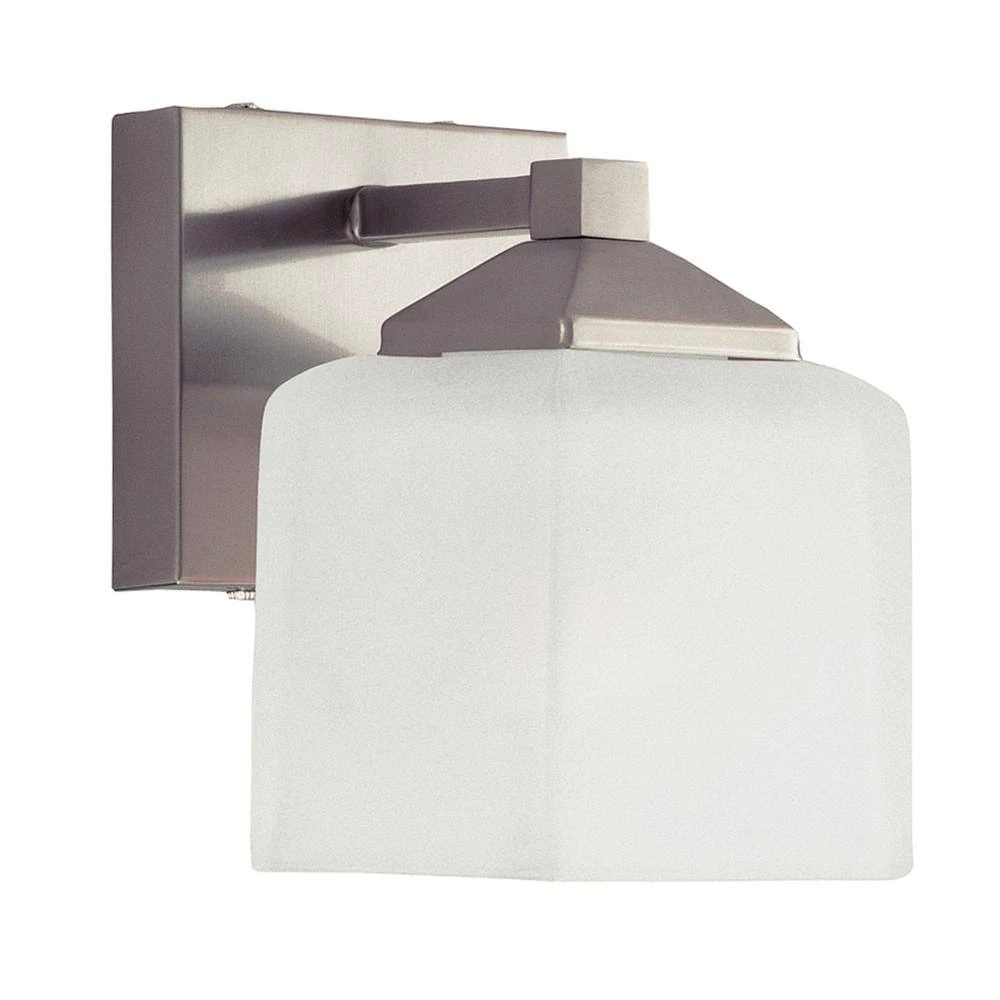 The Edwards Collection from Bel Air offers wall lights with a sleek, transitional look designed to provide functional and decorative illumination to your home. The Edwards wall sconce provides task lighting and area lighting for smaller sized bathroom and powder room spaces. The piece features a simple square wall plate that holds a single frosted glass shade. The square shade is open at the top to allow for easy access to change the bulb, and for directional illumination either above or below as the fixture can be mounted with the shade facing up or down. This wall light offsets the frosted glass with a metallic pewter finish, adding a contemporary feel and allowing the piece to blend seamlessly with chrome and nickel bathroom hardware. Mount the Edwards wall sconce in bathrooms on either side of a vanity mirror, or use in hallways, near artwork, or wherever additional accent lighting is needed.