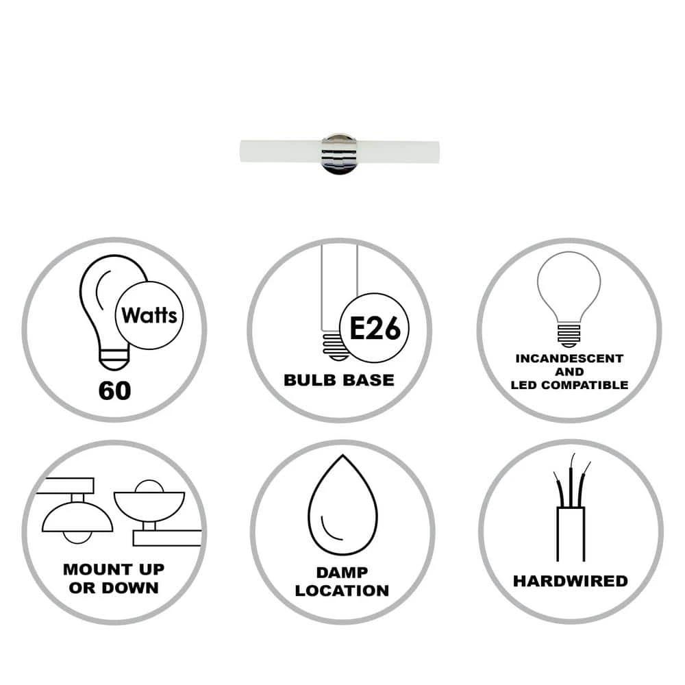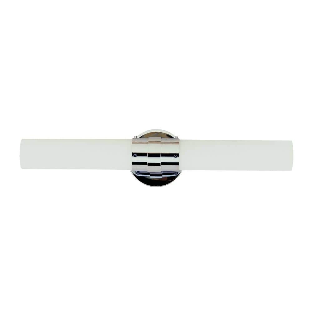 The Fusion Collection features contemporary style interior lighting designed to coordinate well with a variety of interior decor styles from transitional to modern. The Fusion 20.5 in. vanity fixture is the largest light bar style wall light in the series, and is offered in a polished chrome finish. The elongated frosted glass shades on either side of the fixture compliment the metallic finish and lends the piece to a minimalistic style. 2 T10 incandescent or LED bulbs are housed in the shades, 1 on either side, and offer warm and even illumination. This wall light can be mounted vertically or horizontally for a customized look. The Fusion Vanity family is a decorative way to bring light into your bathroom and powder room areas. Shop the Fusion Collection for additional vanity styles, and coordinating indoor lighting for the rest of the home.