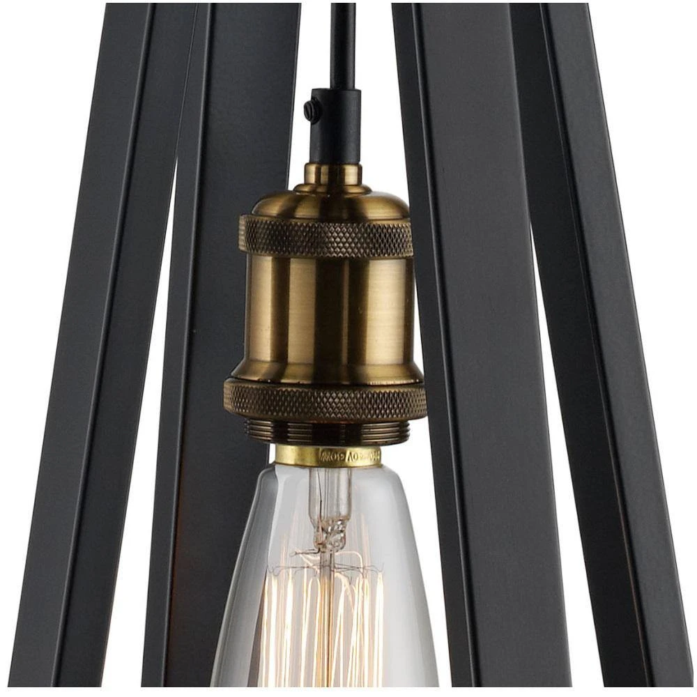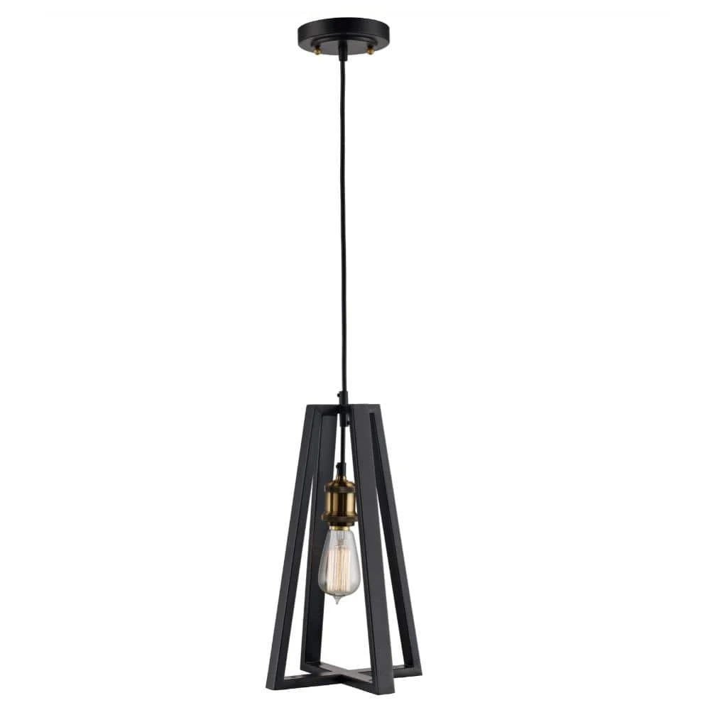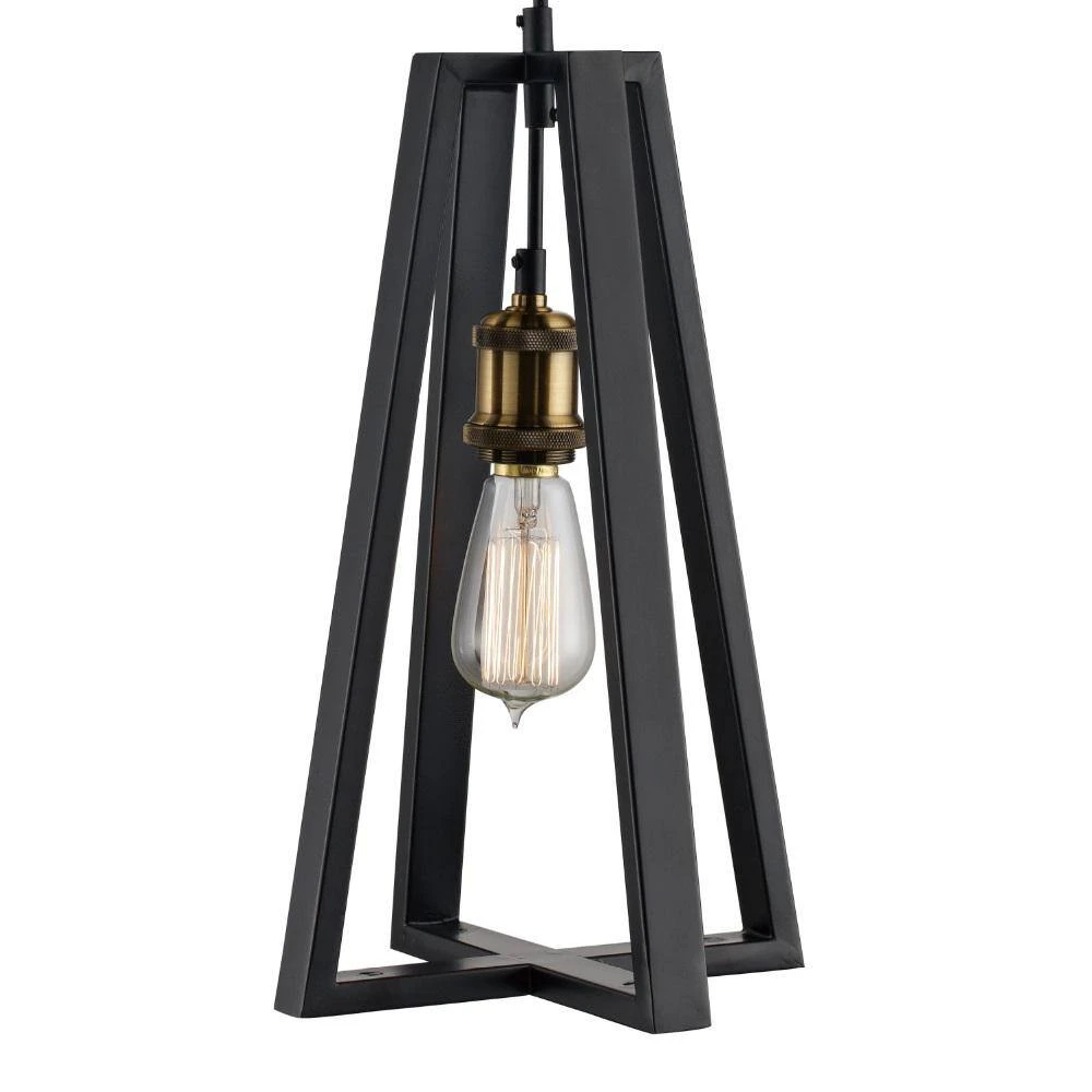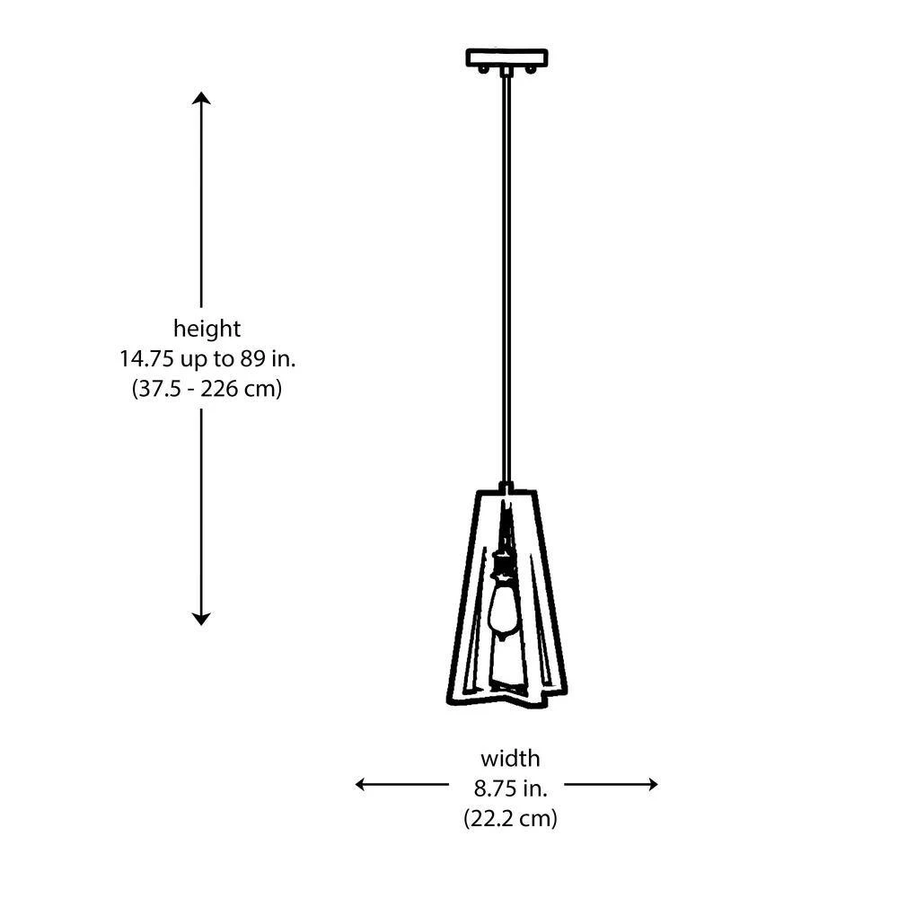 The Gatlin mini pendant from Bel Air provides focused light while adding style and interesting design to your home’s kitchen and living areas. This unique fixture functions as a single piece in smaller spaces, or works well when used as a set along a linear kitchen island or dining room table. The open metal framework of this industrial-inspired pendant is formed into a geometric pyramid-shaped shade with four tapered sides. An antique gold finished bulb socket hangs inside the metal shade with the bulb fully visible in the open space. A vintage Edison style filament light is recommended to capitalize on the industrial tone of the piece. The pendant body is finished in rubbed oil bronze and hangs from a matching wire that allows for height adjustability and sloped ceiling compatiblity.