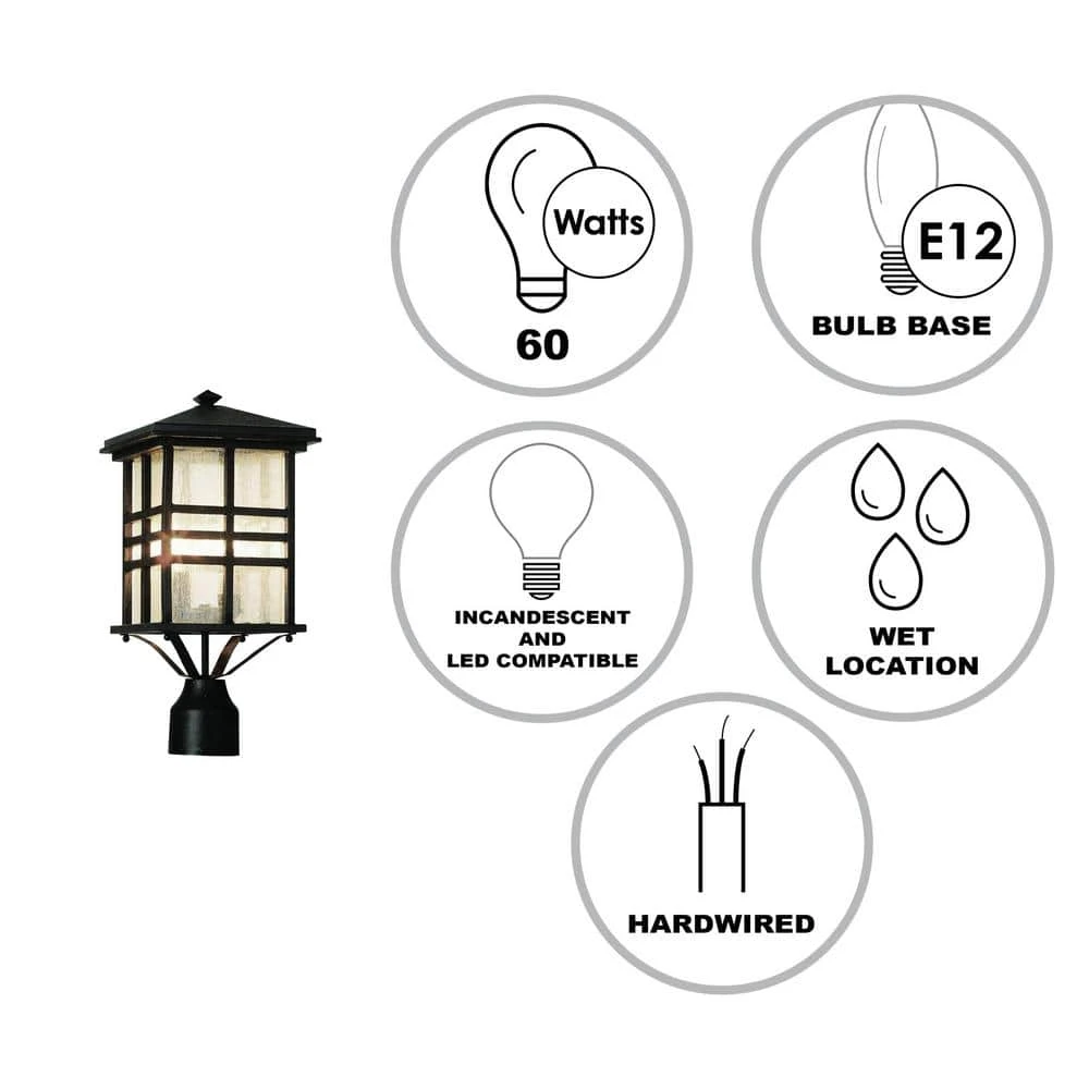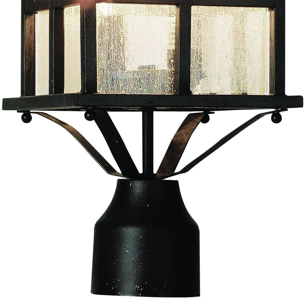The Huntington Collection from Bel Air exhibits rustic style outdoor lights with sharp lines and decorative craftsman accents. The Huntington 16 inch tall post light is designed to add charming character to your home’s landscape and walkway areas while providing ample, functional illumination. The lantern is finished in black and includes tinted seeded glass windows underneath a caged frame, allowing the light to filter out warmly. The square body can be mounted on light poles or walls and columns with a pier base adapter. Shop the Huntington Collection for a complete set to renovate you home’s exterior.