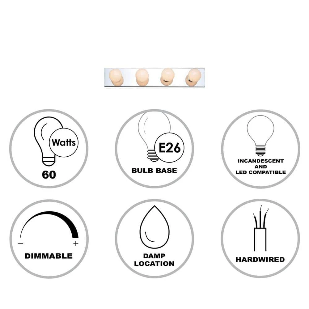- Uses (4) medium E26 base 60-watt bulbs, not included