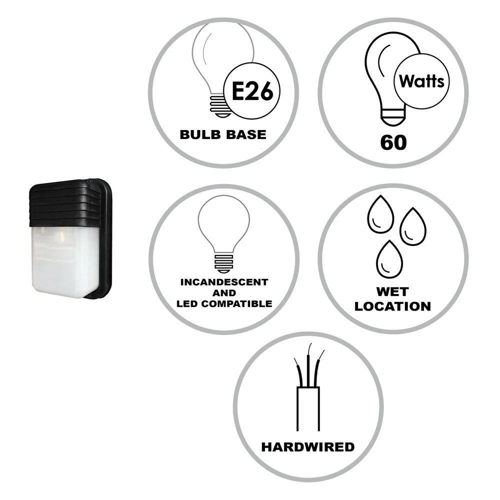 The Mesa Collection from Bel Air presents outdoor bulkhead lighting with ribbed frosted acrylic lenses and browed metalwork, reminiscent of nautical design themes. The Mesa 10 inch tall rectangular shaped fixture is low profile, extending only 4 inches from the wall. The slim design allows this piece to be used in a variety of exterior locations where traditional outdoor lanterns are not an option. The black finish is powder coated to hold up in harsh weather conditions and will coordinate well with existing decor. This fixture accepts a single 60-watt bulb, emitting enough illumination for use in exterior entryways, hallways, walkways, and more. The Mesa Collection can be used as wall lighting or ceiling lighting, depending on your needs.