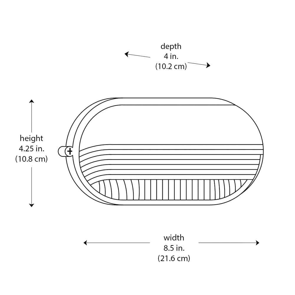 - Oval shape metal housing with brow and ribbed frosted glass