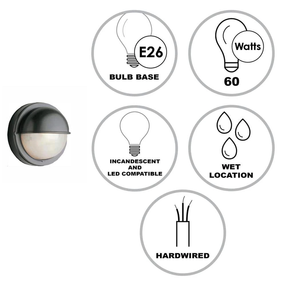 The Mesa II Collection from Bel Air presents outdoor bulkhead lighting with ribbed frosted acrylic lenses and browed metalwork, reminiscent of nautical design themes. The Mesa II 7 inch round fixture is low profile, extending less than 4 inches from the wall. The slim design allows this piece to be used in a variety of exterior locations where traditional outdoor lanterns are not an option. The black finish is powder coated to hold up in harsh weather conditions and will coordinate well with existing decor and other exterior lights. This fixture accepts a single 60-watt bulb, emitting enough illumination for use in exterior entryways, hallways, walkways, and more. The Mesa II Collection can be used as wall lighting or ceiling lighting, depending on your needs.