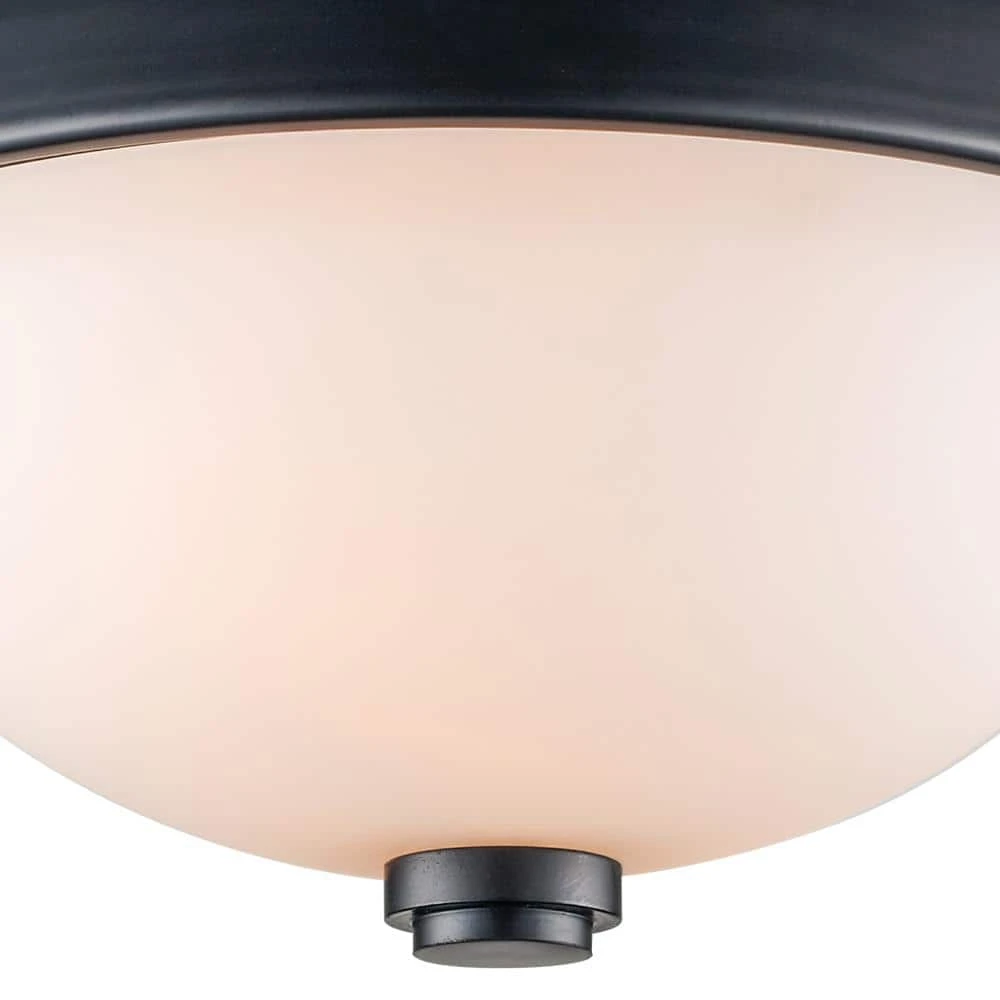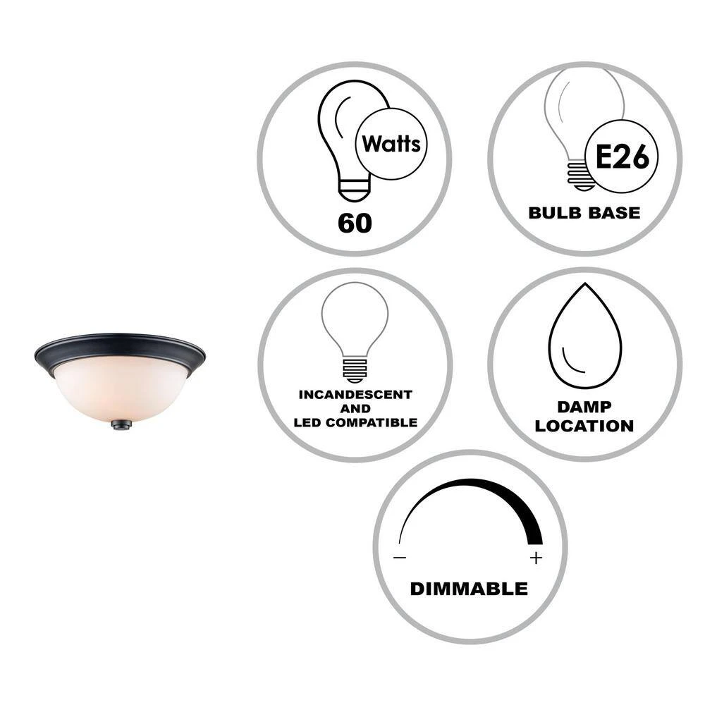 The Mod Pod Collection combines modern design themes with functionality, exhibiting unique interior lighting suitable for a variety of home decor styles. The Mod Pod 13-inch round flush mount is a low-profile ceiling light that works well in rooms with low ceiling clearance. The minimal aesthetic is ideal to blend with any decor while illuminating a variety of interior living areas like hallways, bedrooms, kitchens, offices, and more. This fixture has a white frosted glass bowl shade and a sleek black finish metal frame with beveled rim. There are two light bulbs housed inside the glass shade that can be dimmed when used with a compatible dimmer switch. The Mod Pod family of flush mounts are rated safe for use in damp location such as bathrooms, making them an ideal choice for any room of the house. Shop the Mod Pod Collection for coordinating styles and additional finishes for a complete home renovation.