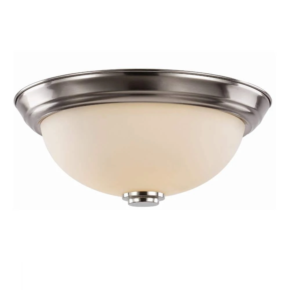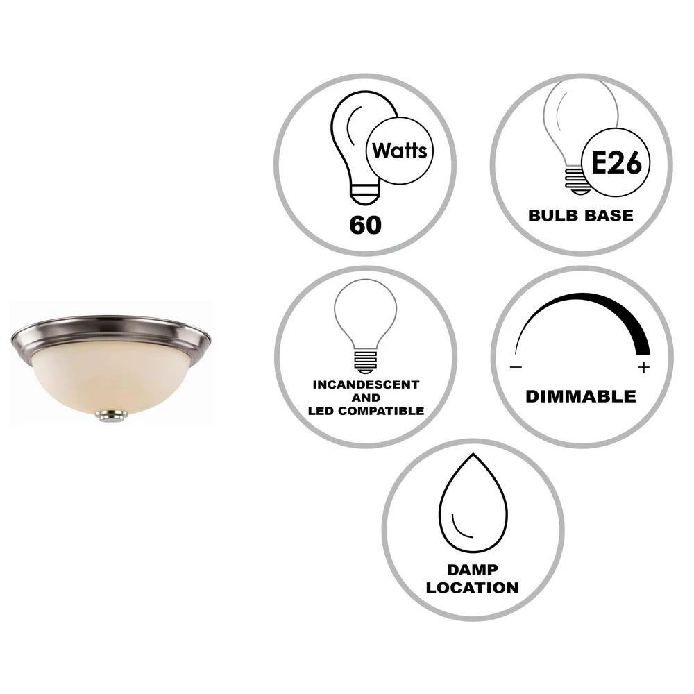 The Mod Pod Collection from Bel Air combines modern design themes with functionality, exhibiting unique interior lighting suitable for a variety of home types and decor styles. The Mod Pod 15 inch round flush mount is a low-profile style ceiling light that casts a soft ambient light over a wide area. This fixture has a white frosted glass bowl shade and a metallic brushed nickel finish metal frame. Three 60-watt light bulbs are housed inside the shade, offering ample light output for medium to larger sized rooms and hallways. The Mod Pod family of flush mounts are rated safe for use in damp location such as bathrooms, making them an ideal choice for any room of the house. Shop the Mod Pod Collection for coordinating styles and additional finishes.