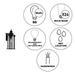 Stewart 20 in. 1-Light Black Outdoor Wall Light Sconce Lantern with Mesh Frame by Bel Air Lighting