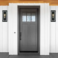 Shaakar 1-Light Large Black Outdoor Wall Light Sconce Lantern with Frosted Glass by Bel Air Lighting