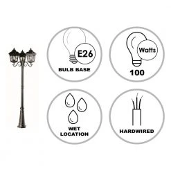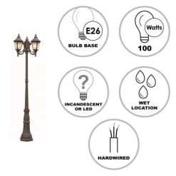 Commons 3-Light Black Outdoor Lamp Post Lantern Mount with Seeded Glass by Bel Air Lighting