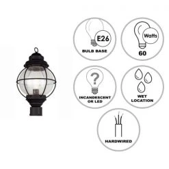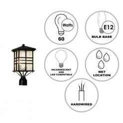 Hamilton 1-Light Black Outdoor Lamp Post Lantern Mount with Opal Glass by Bel Air Lighting