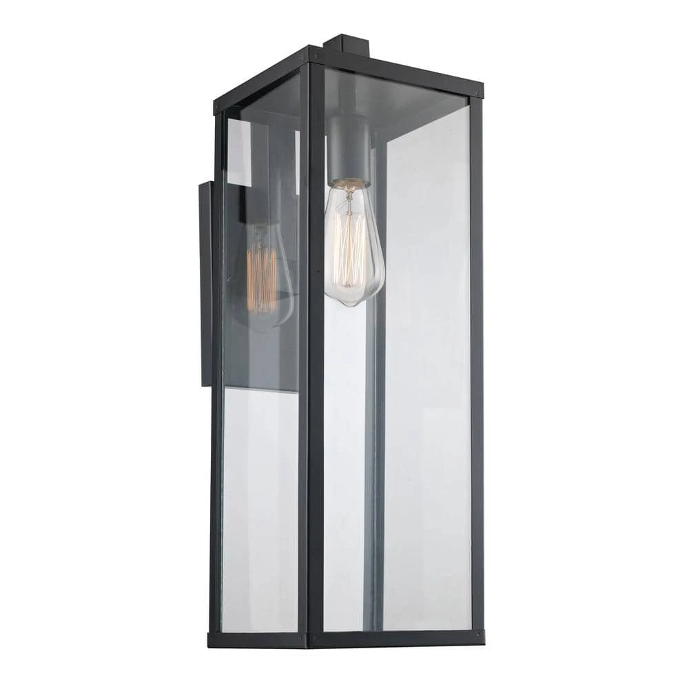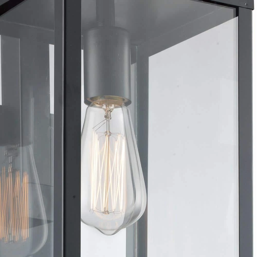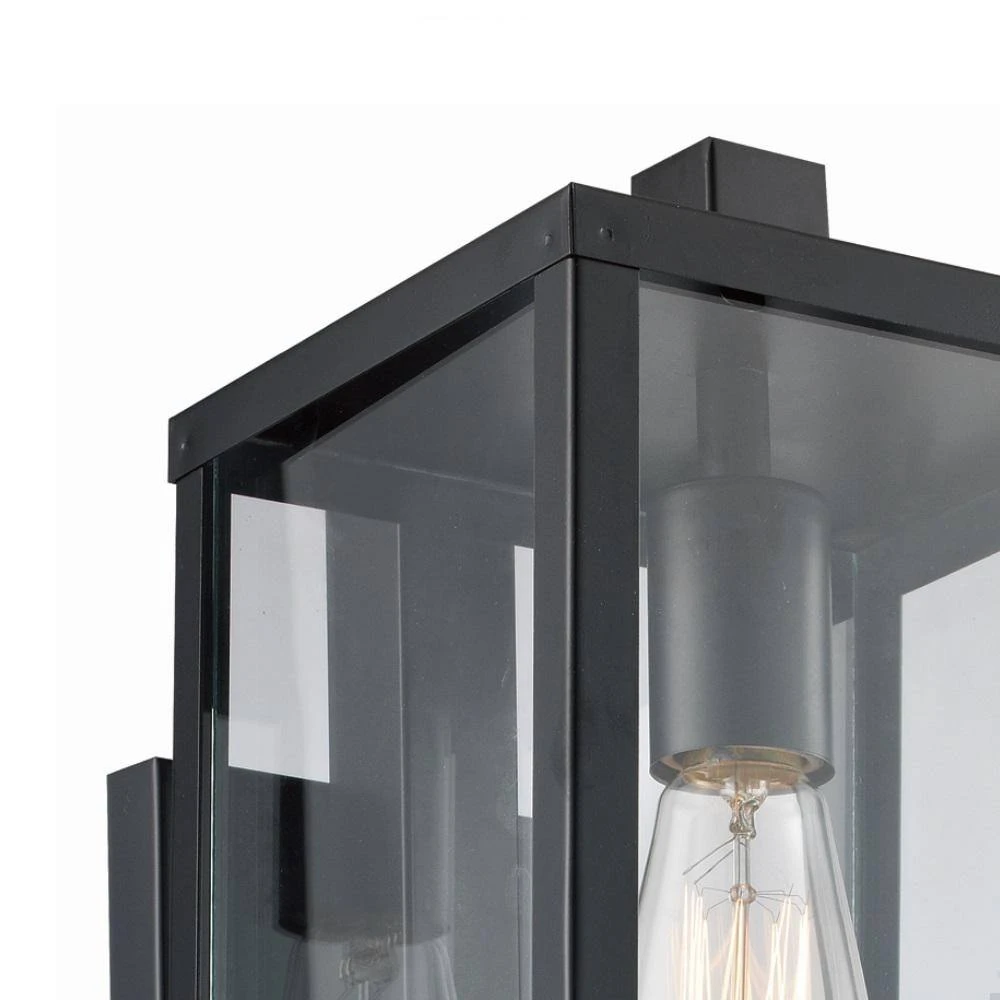 The Oxford collection exhibits modern industrial outdoor lighting designed to coordinate with a variety of home types and decor styles. The Oxford 22.5 inch tall lantern is the largest outdoor wall light in the collection and features a simple rectangular frame and clear glass sides; design elements that coordinate throughout the family. The lantern offers both area and accent lighting to walkways and large driveway areas, and works well when mounted in multiples on either side of a garage door or exterior entry door. A single down-light bulb is visible through the clear glass and is easily accessed through the open bottom of the fixture. A vintage, Edison style bulb is recommended (not included) to add an industrial feel to the piece. The linear body attaches firmly to a matching black rectangular wall plate, a durable design that will hold up in harsh weather conditions.