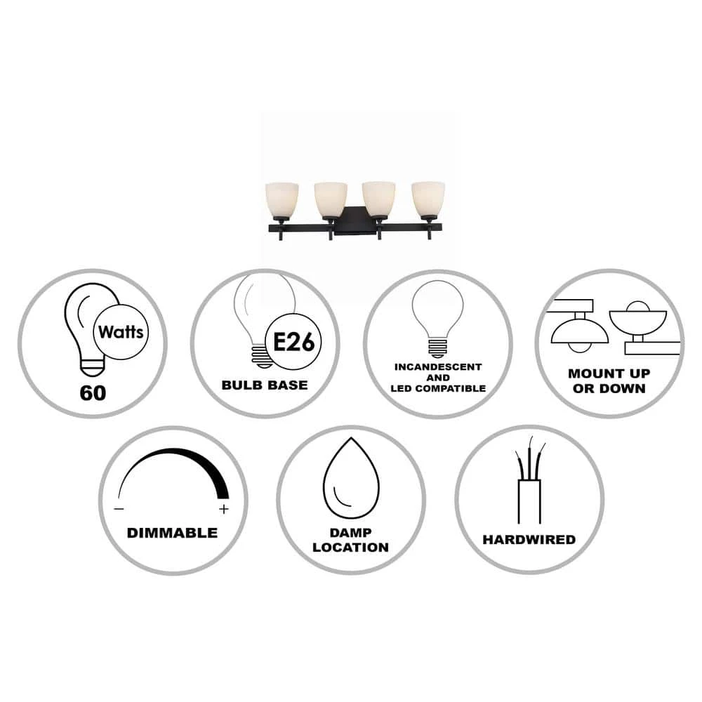 - Uses (4) medium E26 base 60-Watt bulbs, not included