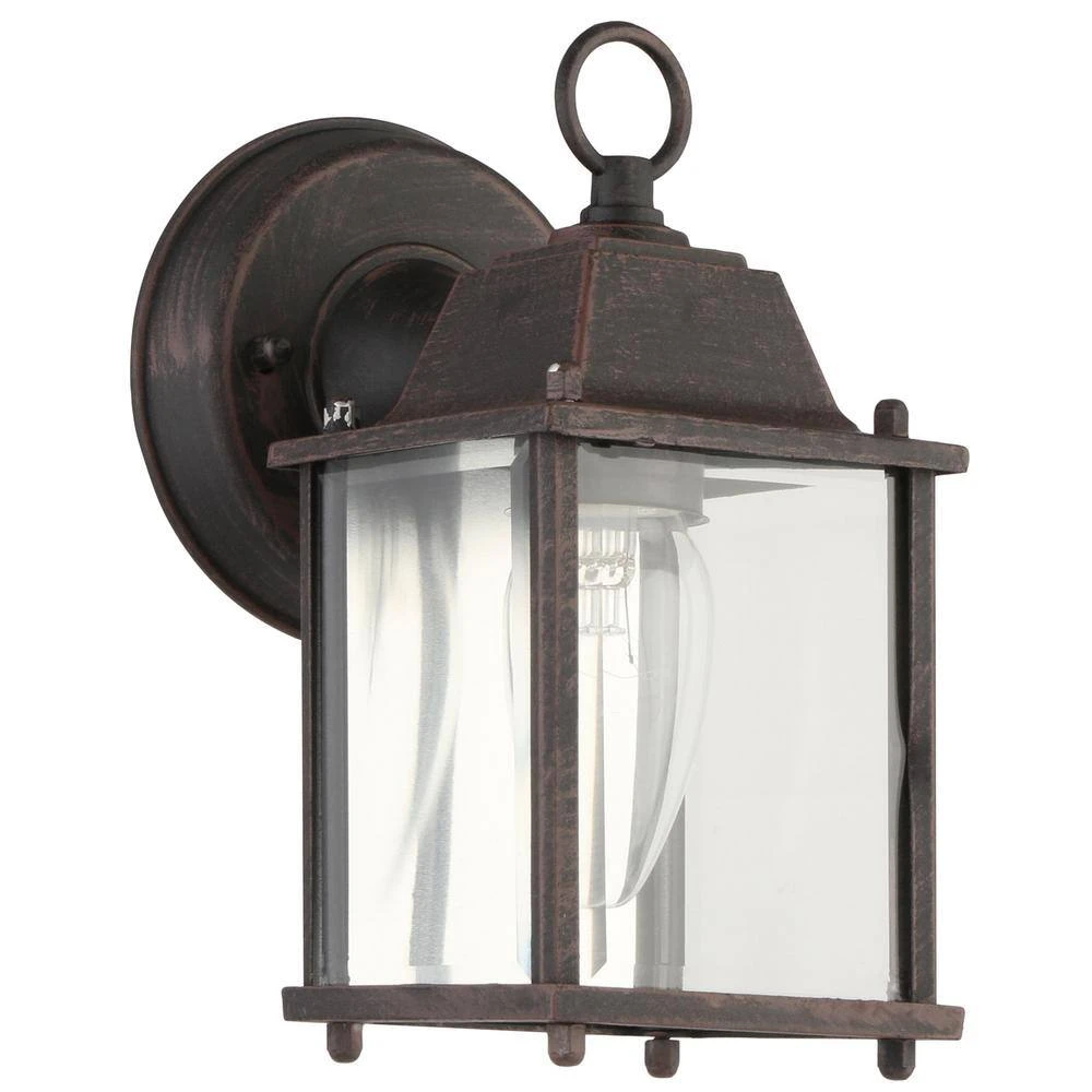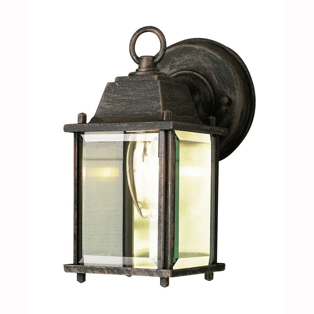 Quaint porch light with decorative ring on top. Attaches to round wall cover. Opening at bottom provides easy access to bulbs. Down-light bulb installation with reflective backing for brighter shine from 3 sides. Available in several finishes. Energy efficient model available.