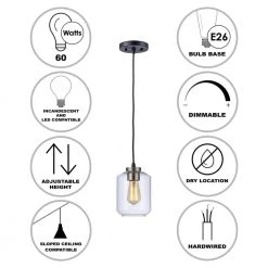 1-Light Black and Brushed Nickel Mini Pendant with Clear Glass Shade by Bel Air Lighting