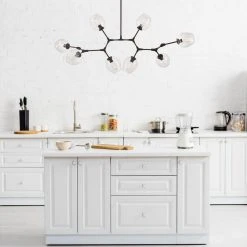 8-Light Black Hanging Sputnik Kitchen Pendant Light with Clear Glass Shades by Bel Air Lighting