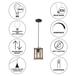 1-Light Black Hanging Mini Kitchen Pendant Light with Faux Wood Shade by Bel Air Lighting