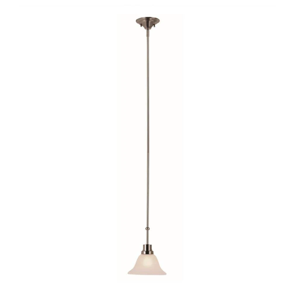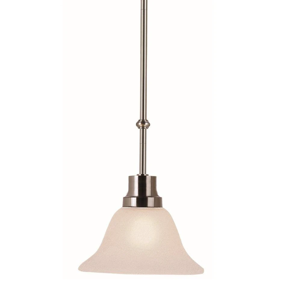 The Perkins Collection from Bel Air combines transitional design themes with functionality for a family of interior lights designed to coordinate seamlessly with your home’s existing decor while providing ample illumination for your daily needs. The Perkins mini pendant is a decorative hanging light that works well kitchen areas, dining rooms, over bar tables, and more. The piece can be used as a single unit to provide accent lighting to smaller spaces, or as a set along a linear island or table. The pendant includes a metal frame finished in brushed nickel, a bell-shaped marbleized glass shade, and nickel-finished hanging hardware. The opaque glass houses a single light bulb and is open at the bottom for easy access to change the bulb, as well as for directional lighting in the space below. The pendant body hangs from extension rods, of which multiple sizes are included for an adjustable hanging height. Shop the Perkins Collection for additional finishes options and additional interior lighting pieces to coordinate throughout your home.