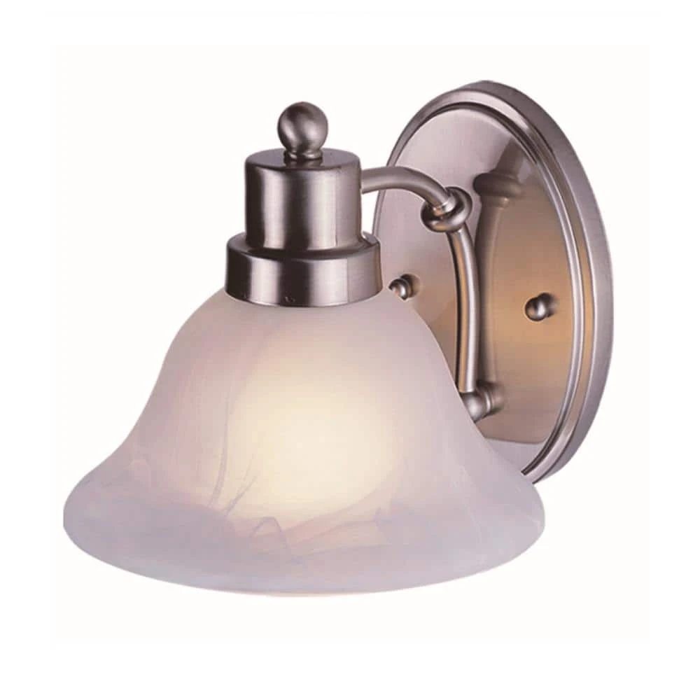 The Perkins Collection from Bel Air combines transitional design themes with functionality for a family of interior lights designed to coordinate seamlessly with your home’s decor and existing fixtures while providing ample illumination for your daily needs. The Perkins wall sconce is a decorative piece that works well in hallways, entryways, and powder rooms. Use as a single unit for accent lighting in smaller spaces, or purchase as a set for use on either side of a mirror, vanity sink, door, or piece of artwork. The sleek metal frame is finished in brushed nickel and includes an oval shaped wall plate and decorative curved arm to hold the marbleized glass shade in place. Mount this wall light with the shade opening facing up or down for a customized look. Shop the Perkins Collection for additional finishes options and additional interior lighting pieces to coordinate throughout your home.