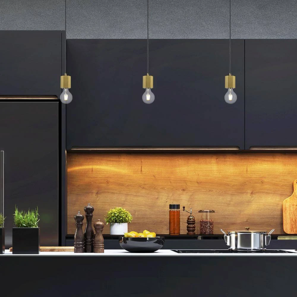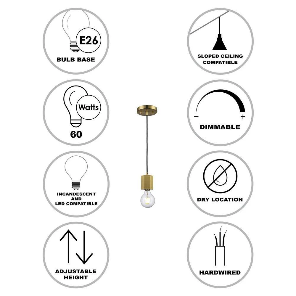 The Placerville mini pendant from Bel Air Lighting provides focused illumination to your home while adding a minimalist, industrial touch to interior decor. This piece can be used alone in smaller interior spaces for accent lighting, or mounted as a set to make a bold statement over a kitchen island, dining room table, bar area, or game room table. The Placerville collection of interior lights contains no glass, so the light bulbs are fully exposed and shine brightly in all directions. The metallic antique gold finish is both sleek and eye-catching, lending itself well to rustic and modern farmhouse style interiors. The geometric socket-style body hangs from a matching antique gold canopy and black cord, offering height adjustability and sloped ceiling compatibility.